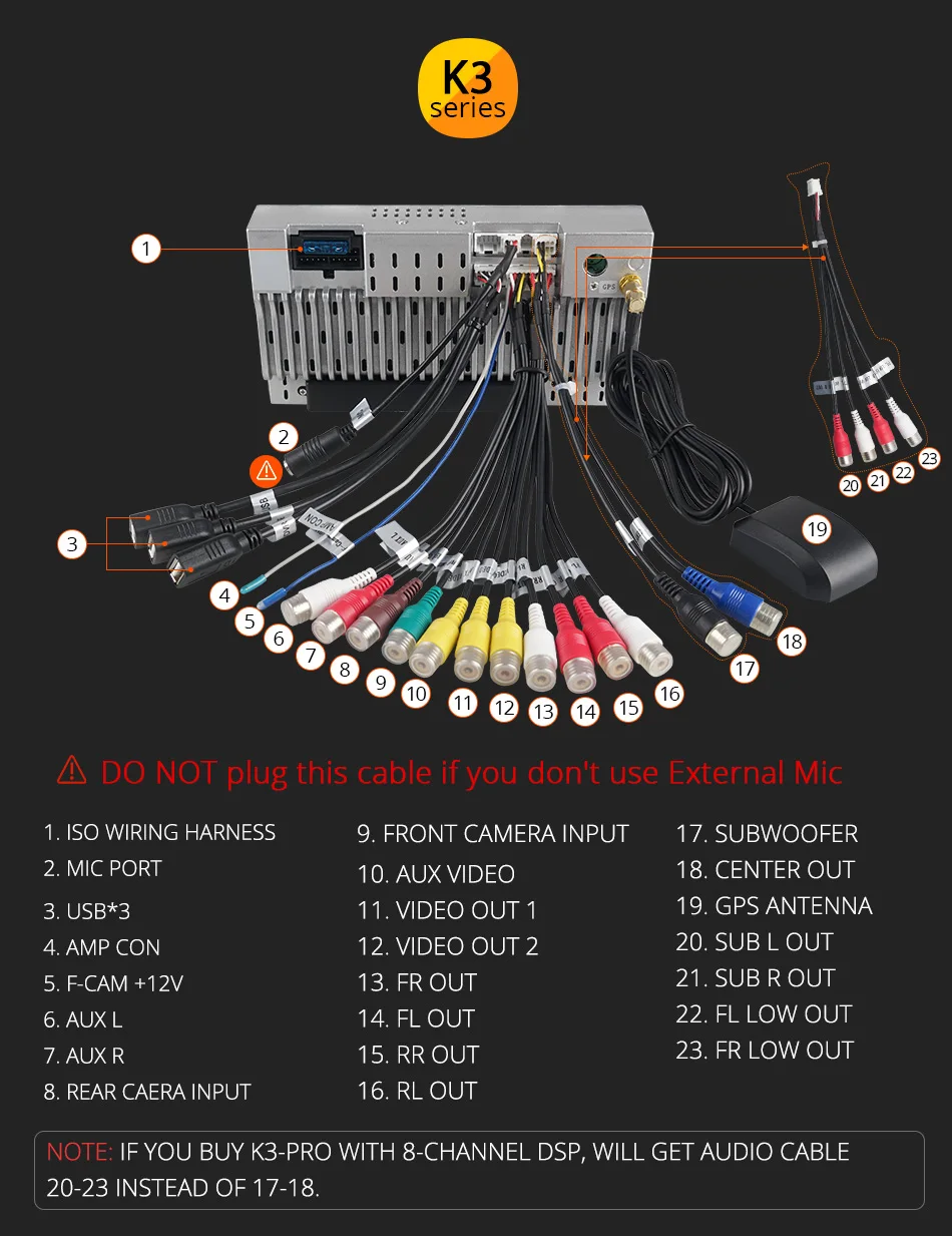 Выход HDMI: K3-PX6 имеет выход HDMI, но обратите вниманиеНа вертикальном экране выходное изображение HDMI не может быть полностью отображено на мониторе подголовника Поэтому Функция HDMI в данный момент не пригодится для вертикальных элементов экрана.