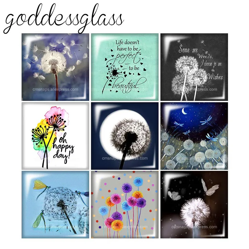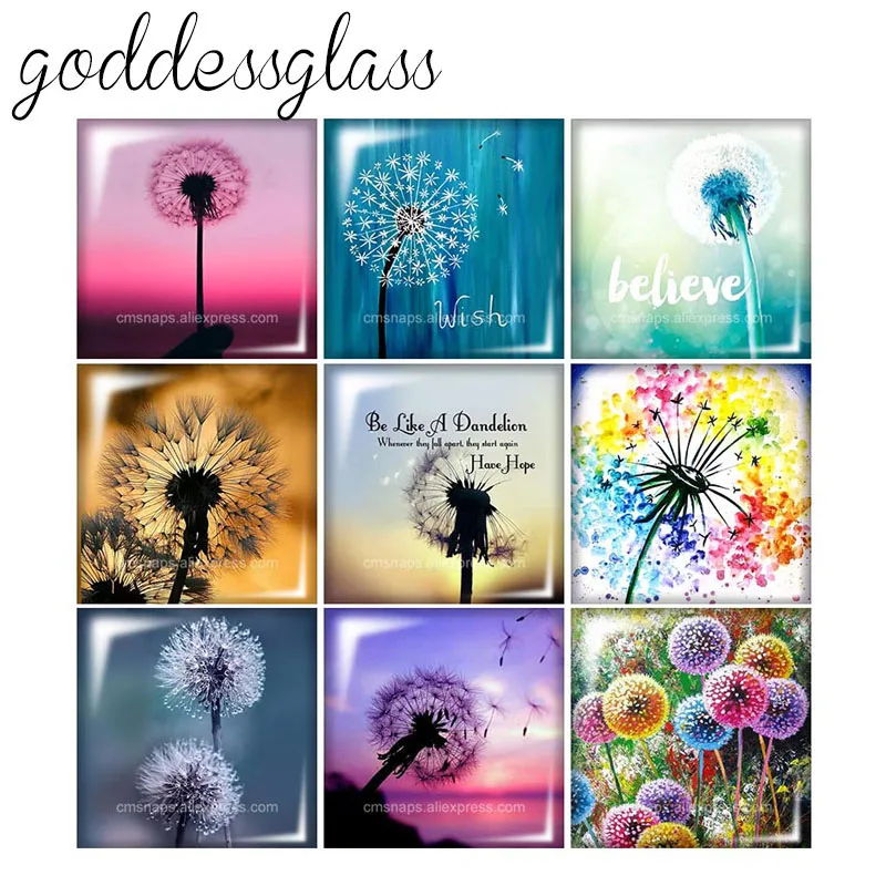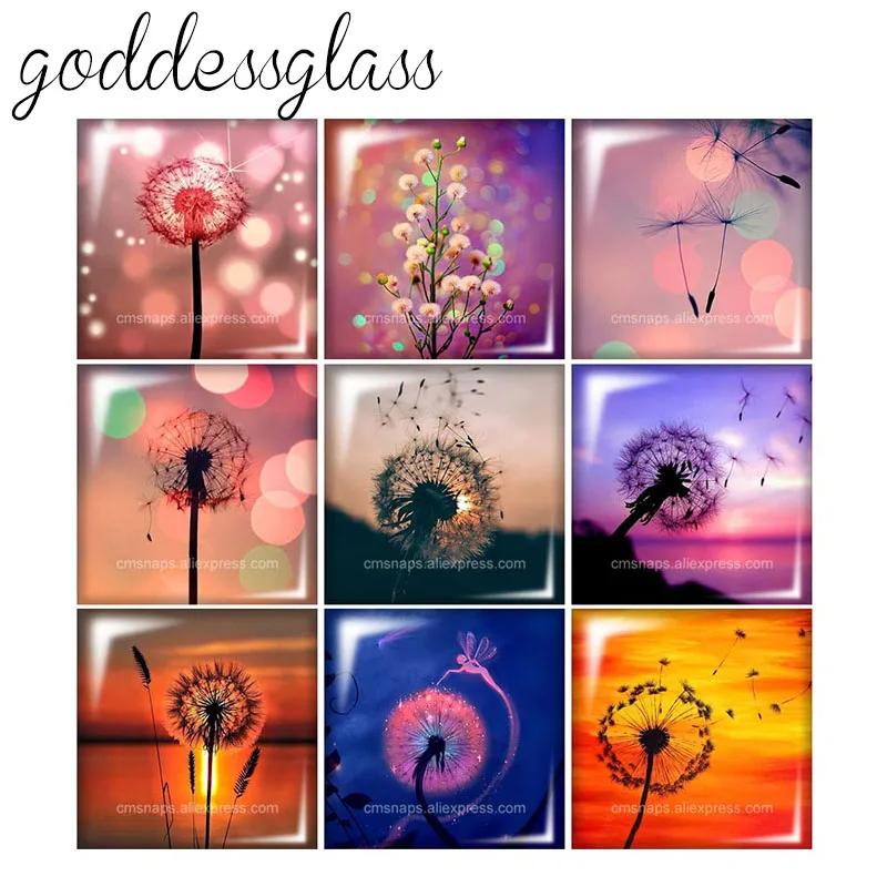 Новинка; Платье с цветочным узором листья Красочные Одуванчик квадрат 10 шт. Смешанные 12 мм20 мм25 мм30 мм кабошоны разрисованные изделия из стекла демо с плоской задней частью, украшения своими руками