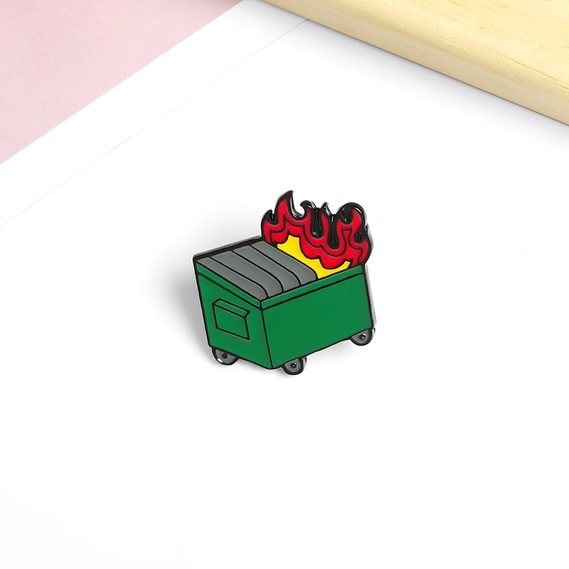 Эмалированный значок XEDZ с изображением зеленого огня, мусорного в...