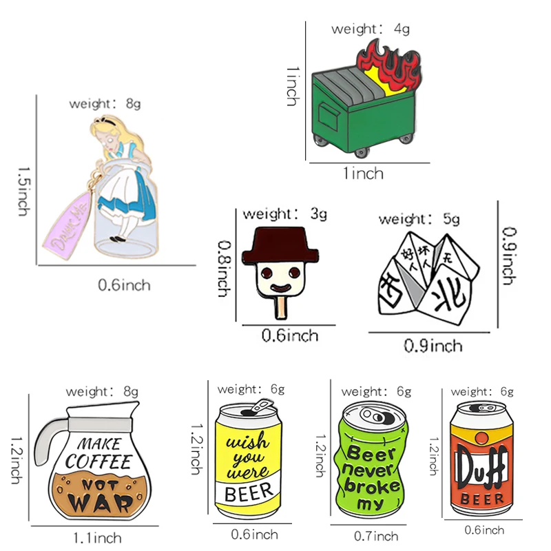 Забавная мультяшная деталь, пейте меня, девочка, Алиса, дуф, пиво, банка, кофе, мусорная корзина на огне, мороженое, броши, значки, ювелирные изделия, подарок