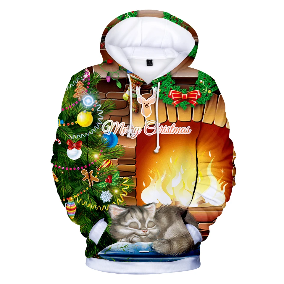 Новинка 2021, Рождественские толстовки с длинным рукавом и 3D принт...