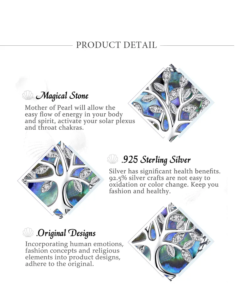 Подвеска Древо жизни EUDORA D170 из стерлингового серебра 925 пробы, ожерелье с синим перламутром, женское изящное ювелирное изделие в подарочной коробке