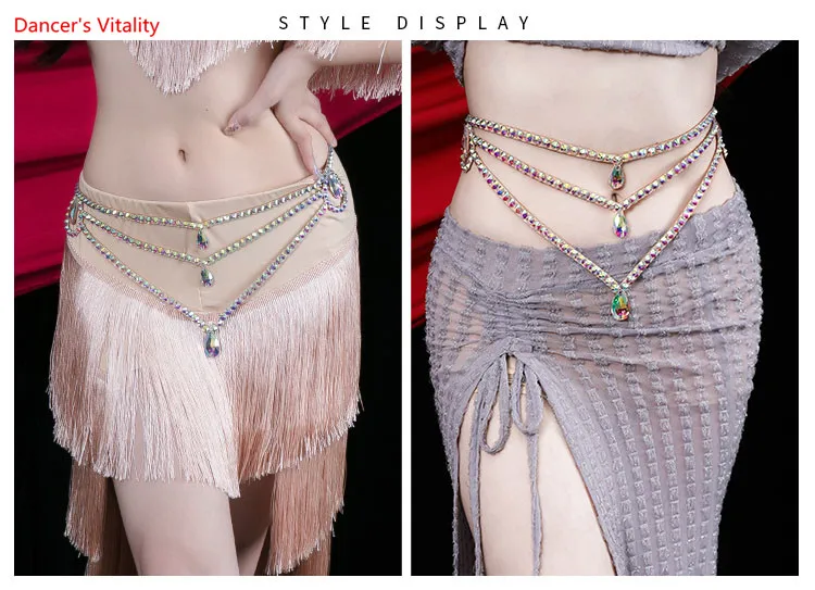 Ремень для танца живота женский, трехслойная цепочка со стразами, элегантный аксессуар для выступлений и соревнований