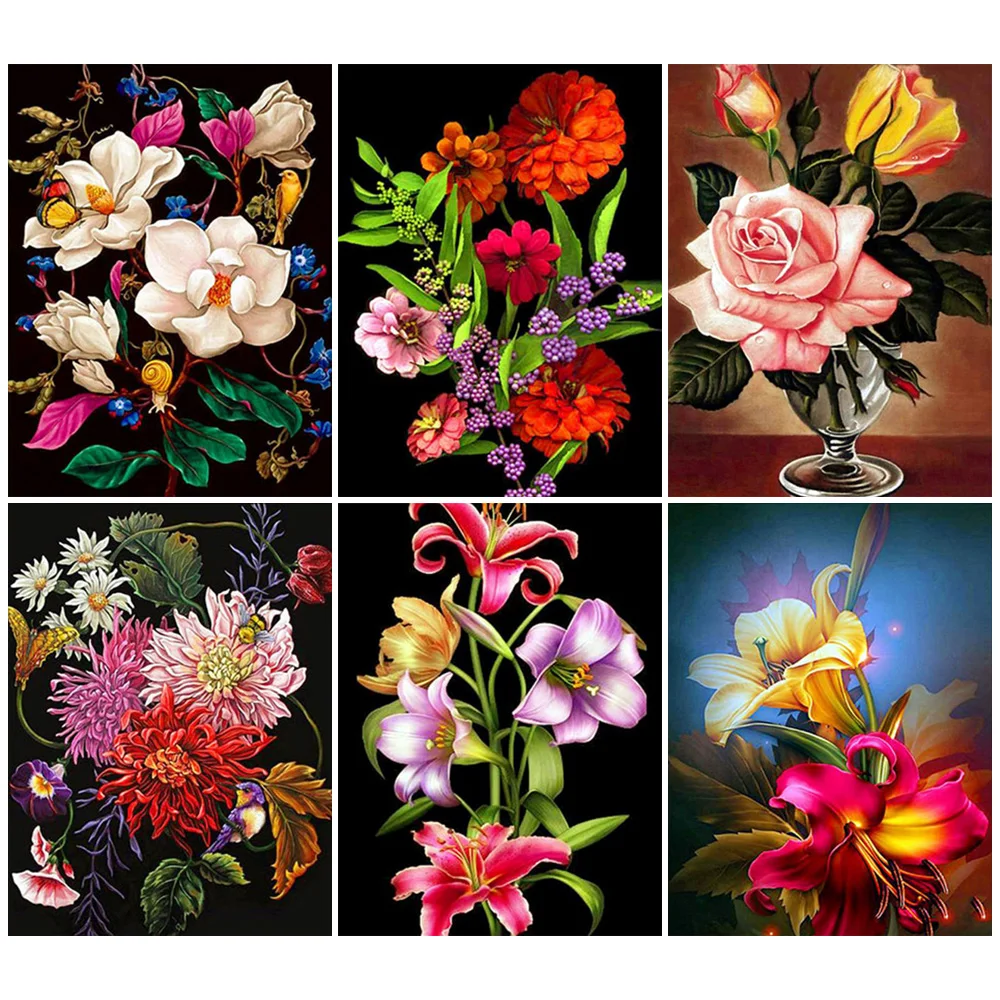 Алмазная живопись Huacan, картина с квадратными цветами 5D сделай сам, семейная вышивка, набор для украшения дома