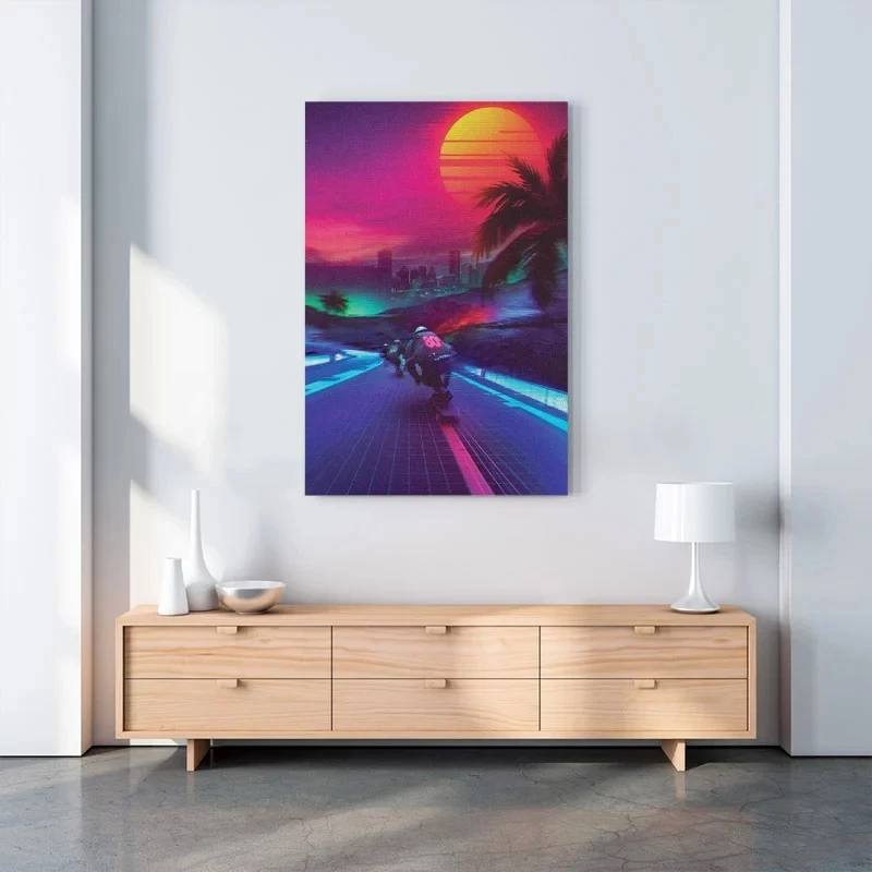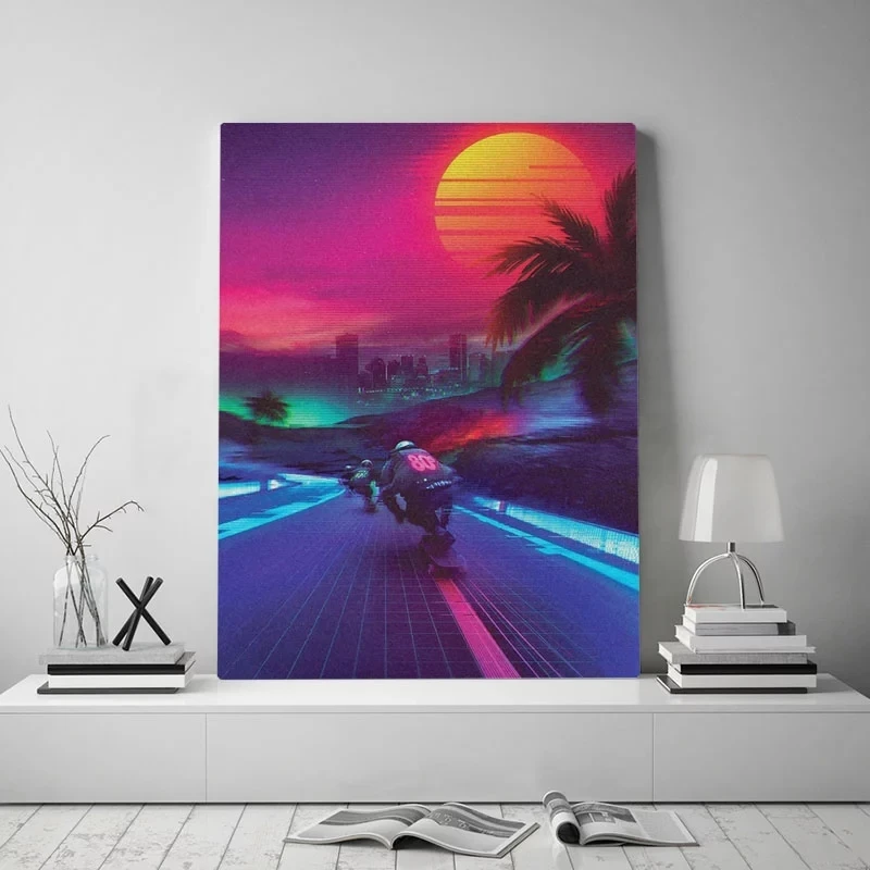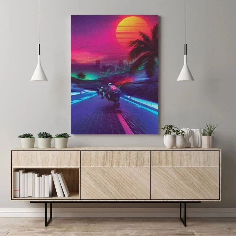 Домашний декор, Synthwave, полночь проигрыватель, холст, HD принты солнца, постер, картина для гостиной, настенное искусство, Модульная картина, без рамки icon star icon star icon star icon star icon star