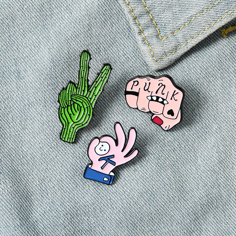Пользовательский панк жест знак эмаль булавки победа кактус ок брошь кулак Сумка Одежда значок булавки на лацканы Смешные ювелирные изделия подарок для друзей