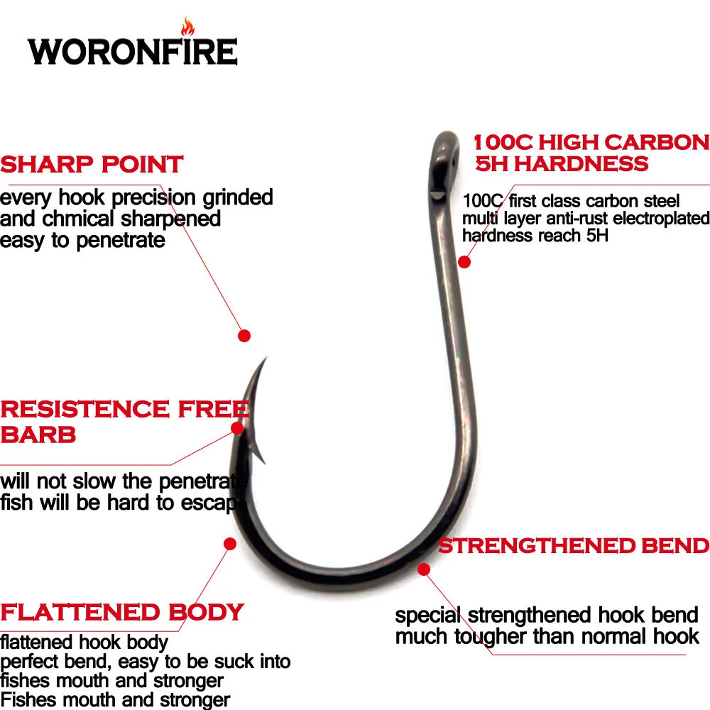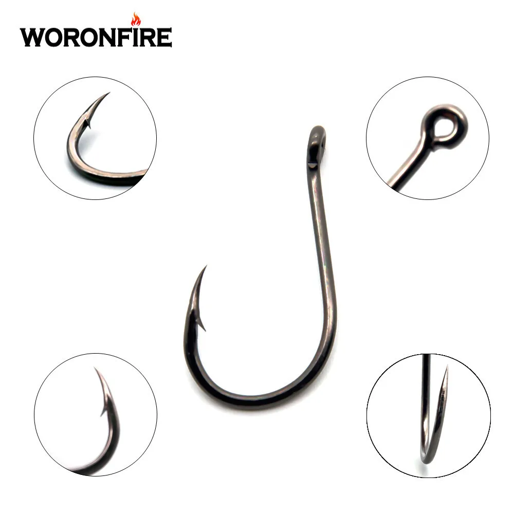 Рыболовные крючки из высокоуглеродистой стали 100C, 50 шт.лот, черный Зазубренный офсетный крючок 1 #2 #3 #4 #5 #6 #7 #8 #9 #10 #12 #, супер острый Рыболовный крючок