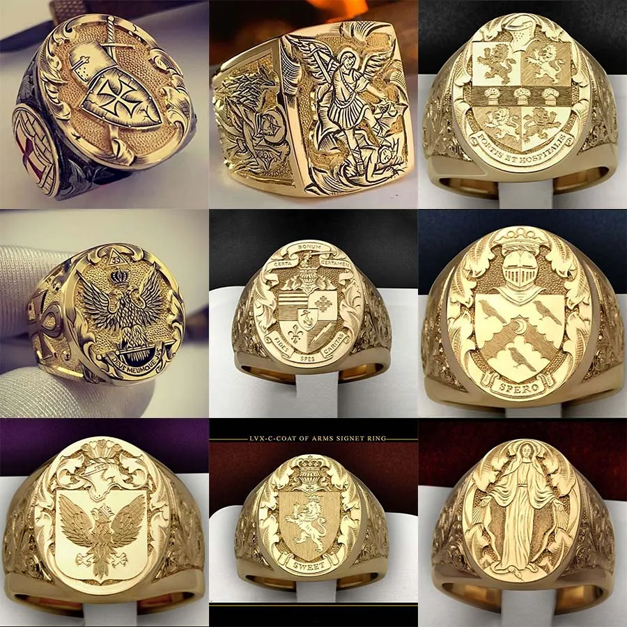 Роскошные герб сладкий печатка кольца с гравировкой для мужчин в ст...