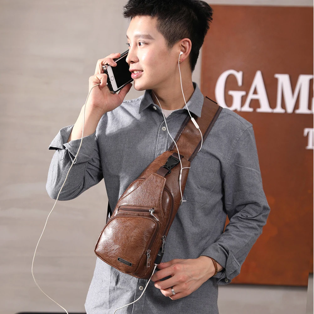 Сумка-мессенджер Мужская, из полиуретана и ПВХ, с выходом USB для зарядки, 2020