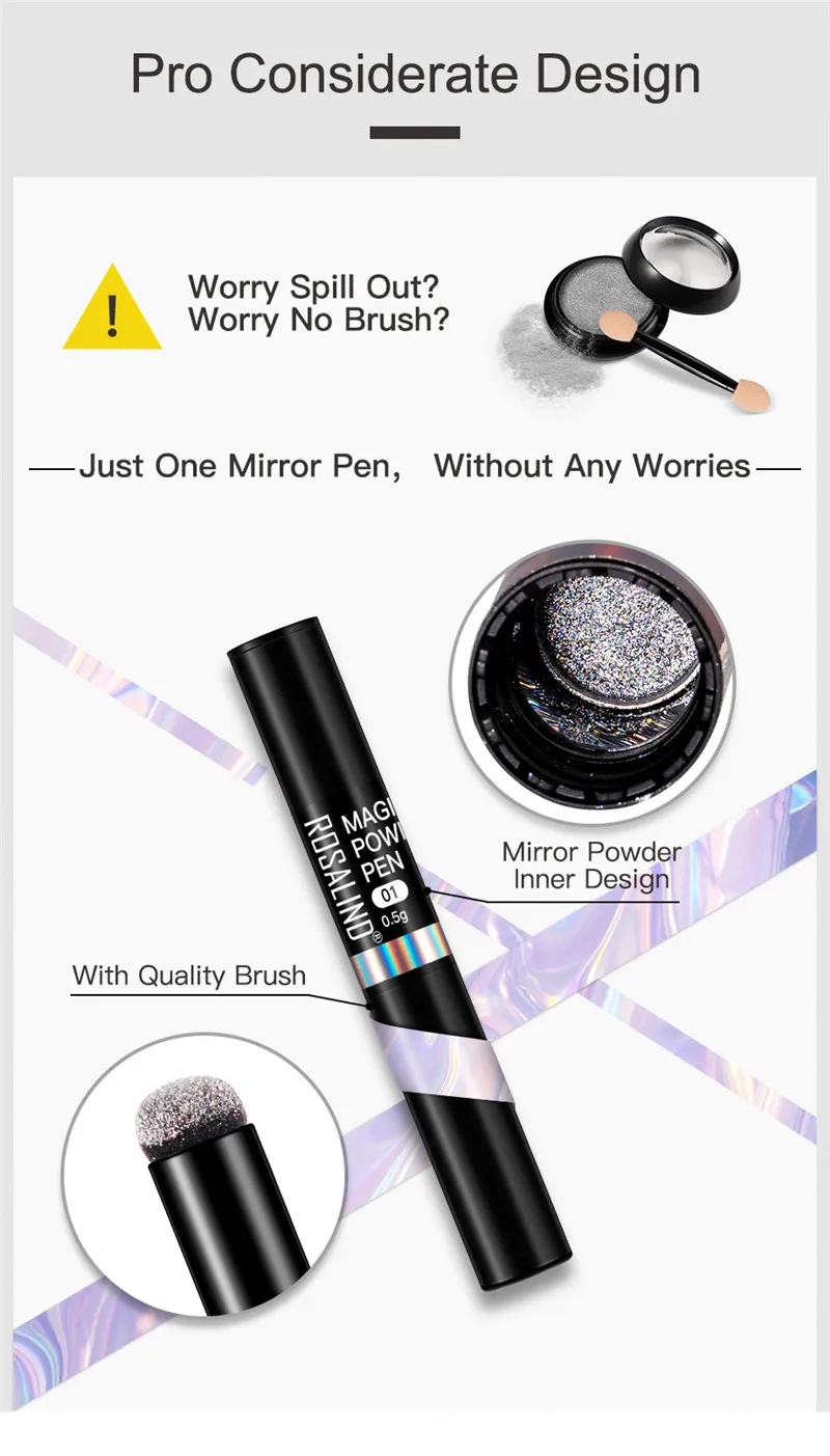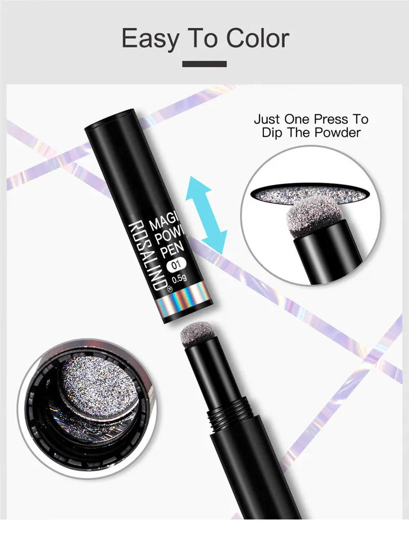 ROSALIND 2020 новейший дизайн ногтей маникюр макияж УФ-гель хромированный голографический металл с эффектом зеркала порошок воздушная подушка Волшебная пудра ручка