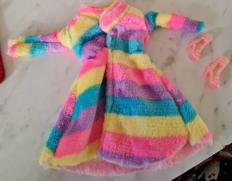 Пальто очень классное, из мягкого материала, на самом деле, как на картинке, обувь слишком крутая, как будто кукла должна иметь под высоким углом каблука. Для такой большой Барби или похожей куклы не будет никаких проблем