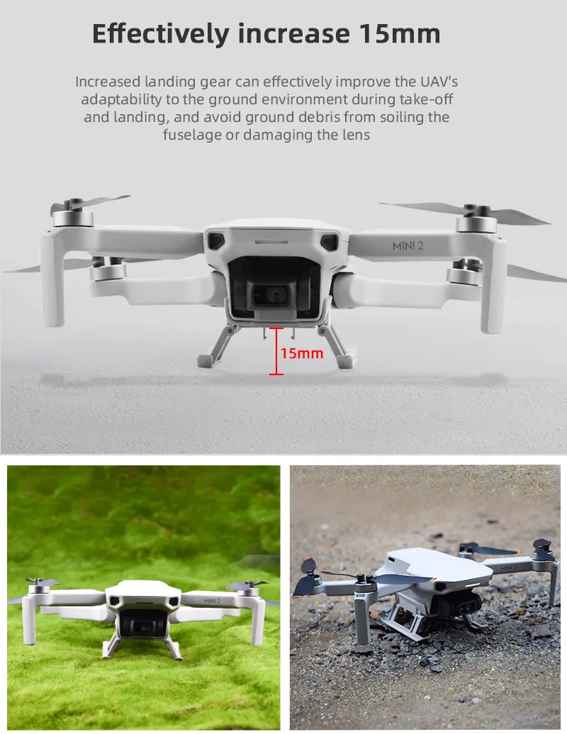 1. Увеличьте высоту между фюзеляжем и землей для защиты корпуса DJI Mavic Mini и батарей от воздействия на посадку,2. Эффективно предотвращает заземление мусора от загрязнения тела или повреждения карданного шарнира во время взлета и посадки,3. Для эффективного увеличения 2,2 см в высоту4. Чрезвычайно прочный и легкий,5. Легко разбирается и легко устанавливается.