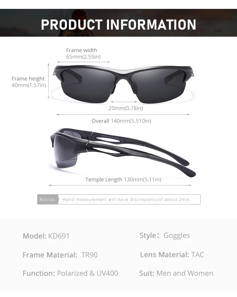 Солнцезащитные очки KDEAM KD691 мужские, Поляризационные солнечные аксессуары в гибкой оправе из TR90 с отверстиями для воздуха, для занятий спортом на открытом воздухе