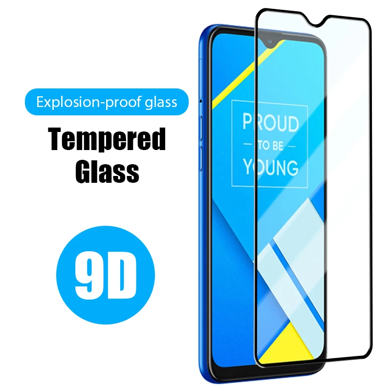 Защитное стекло 9D с черной кромкой для телефона Realme Q2 Pro V5 V3, полное покрытие, закаленное стекло для Realme C3 C11 C12 C15 C17 C2 C1