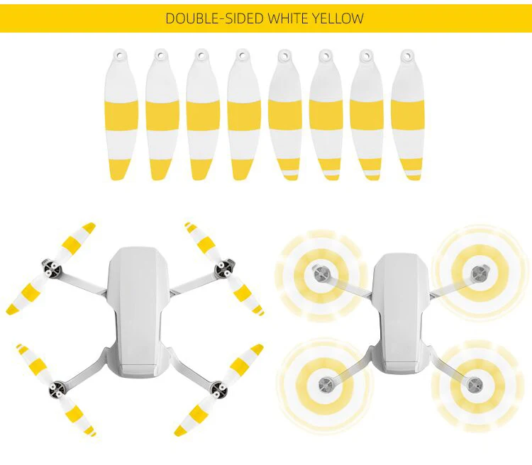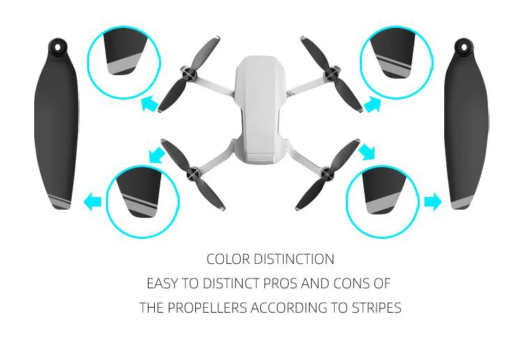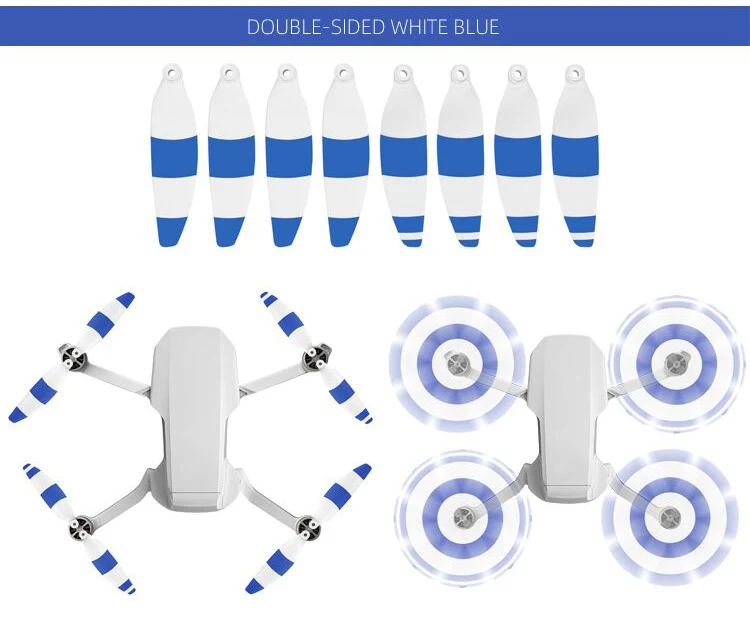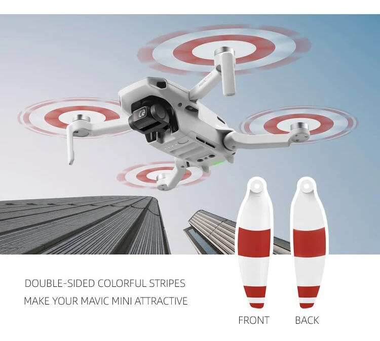 -Подходит для Дронов DJI Mavic Mini 2/SE,-Двухсторонние цветные полосы, предназначенные для мини-дронов,-Небольшой размер и вес, легко носить с собой,-Низкий уровень шума делает ваш Дрон бесшумным полётом,