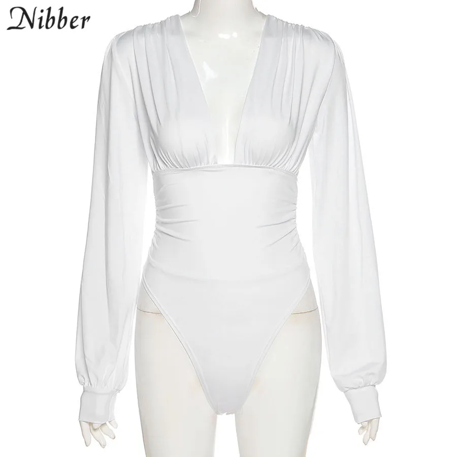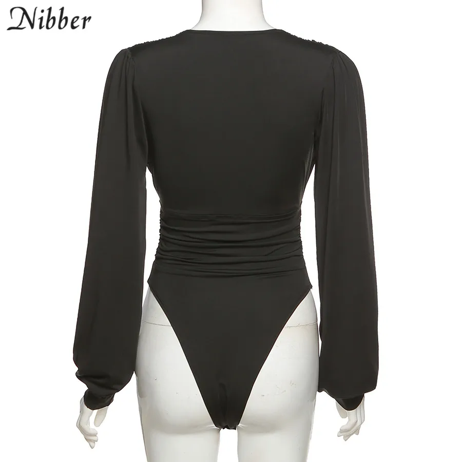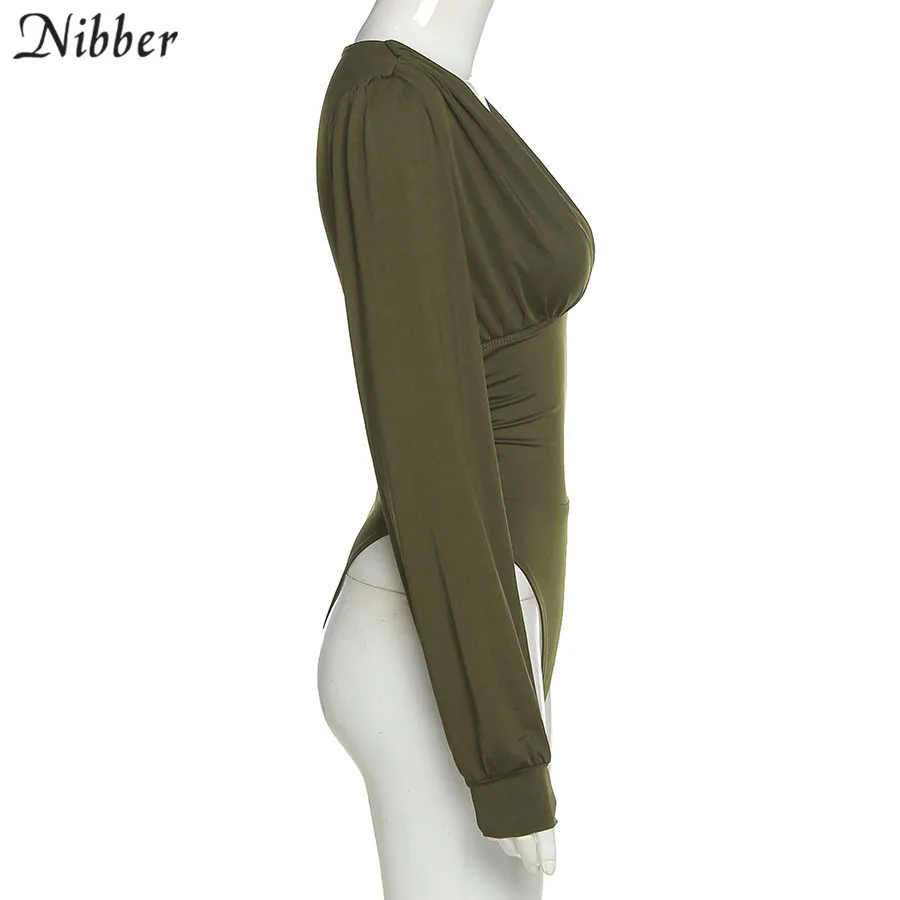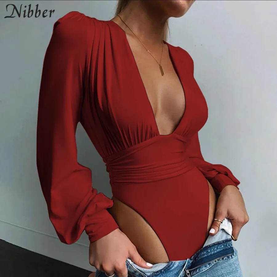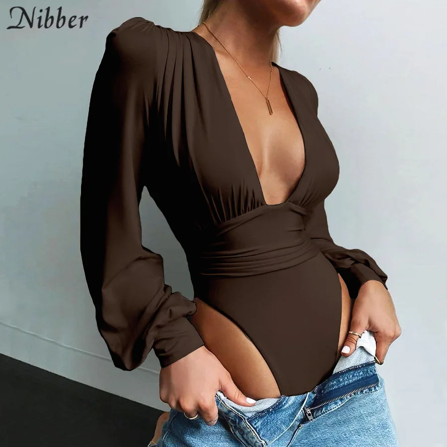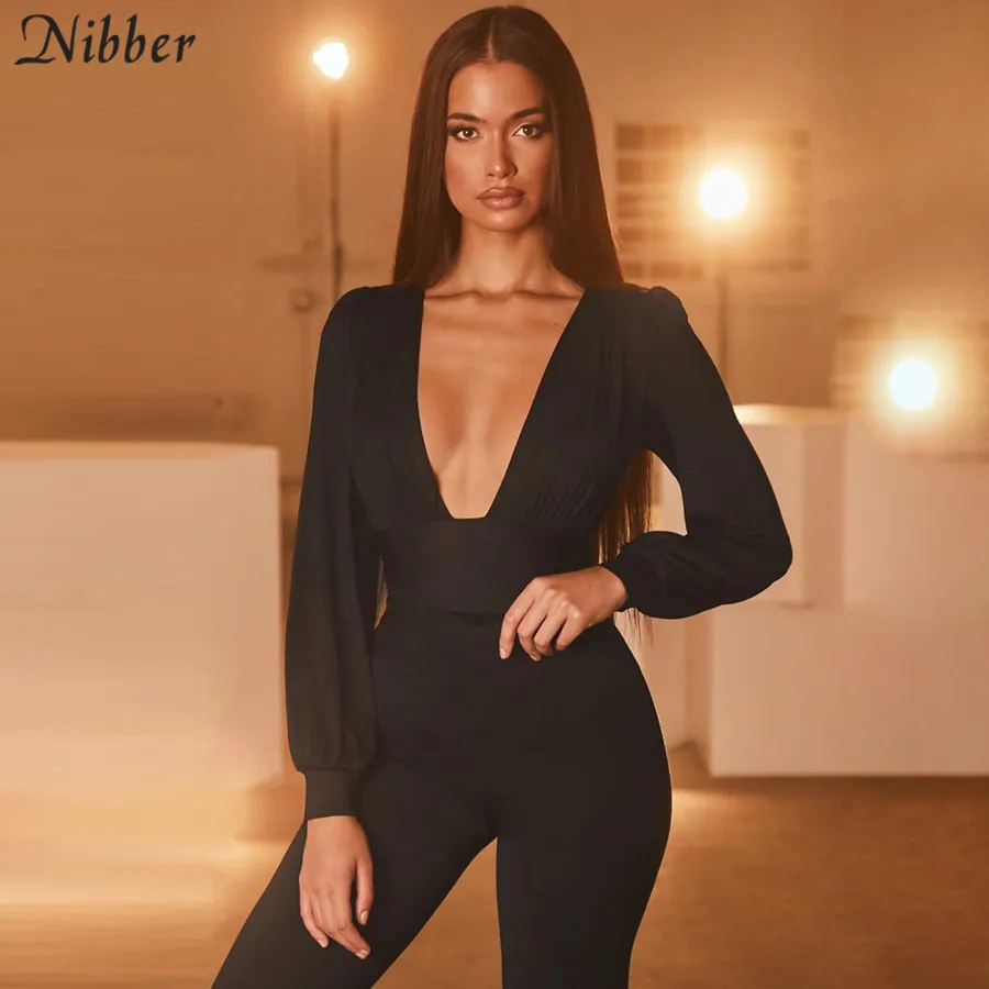 Сексуальное боди Nibber с глубоким V-образным вырезом и длинным рукавом для женщин, Клубная одежда, Осенний модный базовый комбинезон, Уличная Повседневная одежда, комбинезон для женщин