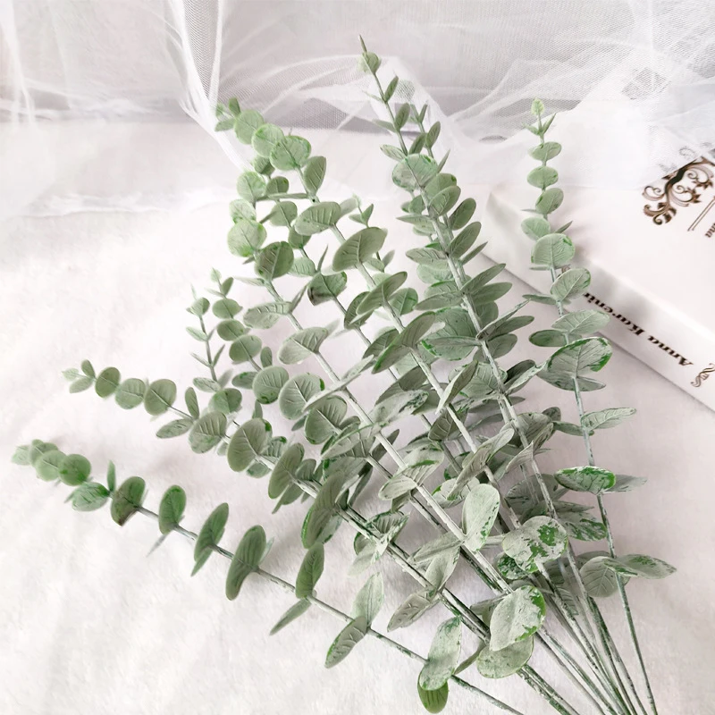 1 шт искусственные листья филиал детская фоновая фотография в стиле ретро зелёное шелк лист эвкалипта для дома свадьба декор из растений искусственная ткань Листва украшения комнаты