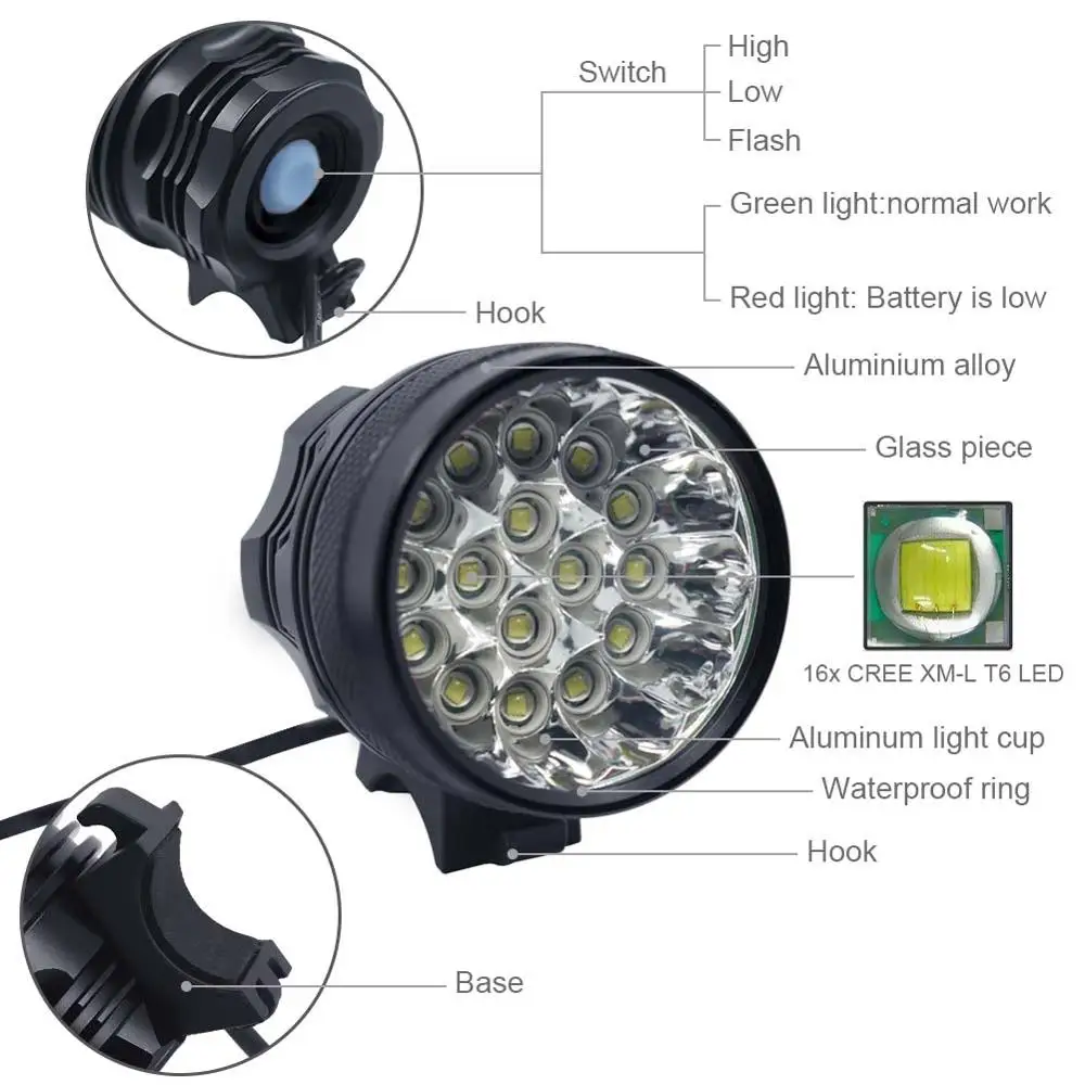 40000LM XML T6 светодиодный велосипедный светильник MTB велосипедная передняя фара 16 Светодиодный s бег головной светильник фарол велосипед светильник для Безопасность ночной езды