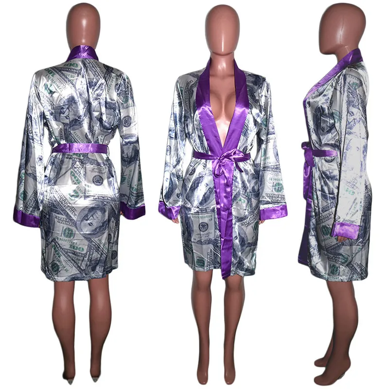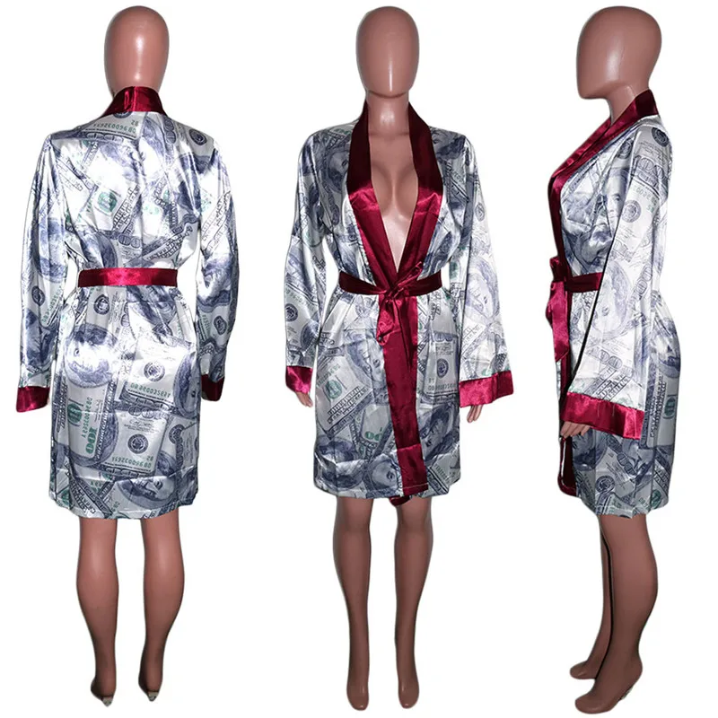 Женское атласное платье макси, длинное платье с запахом и принтом, красивая одежда для отдыха, для клувечерние, на осень