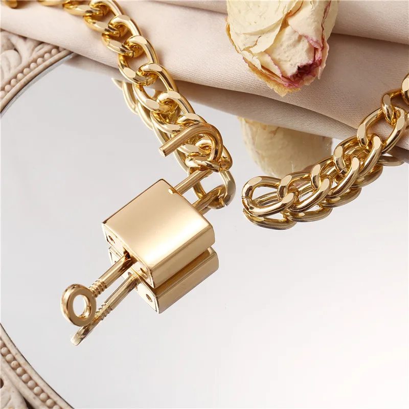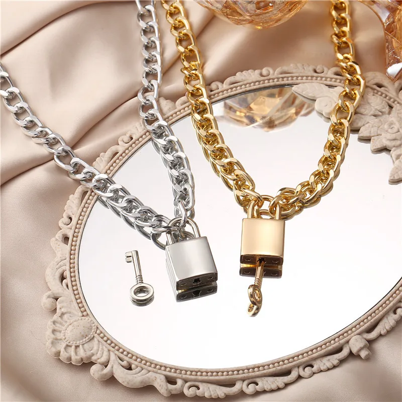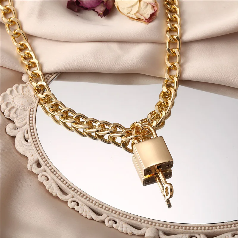 Ожерелье с открываемым замком для женщин, крупная цепь золотистого цвета в стиле панк, ожерелье с замком в стиле хип-хоп, ювелирное изделие
