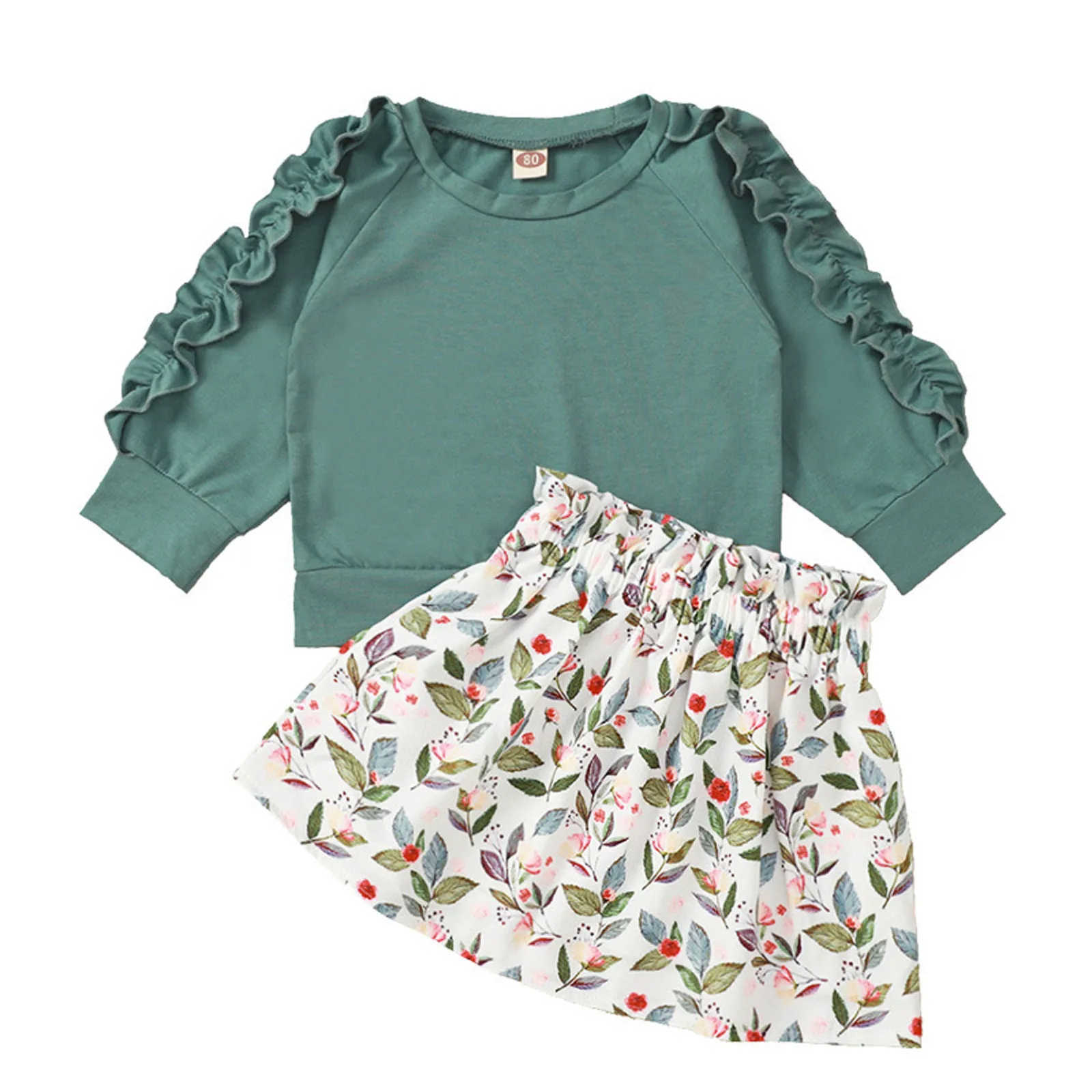 Одежда для новорожденных девочек 2020 наряд для маленьких девочек Однотонные топы с оборками + юбка с цветочным принтом, комплект для 6, 9, 12, 18, 24 месяцев, ropa nina