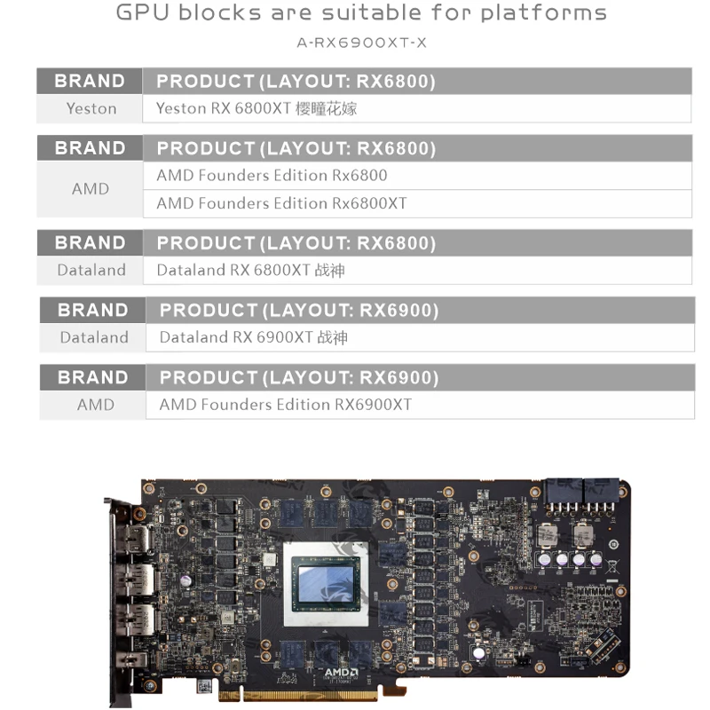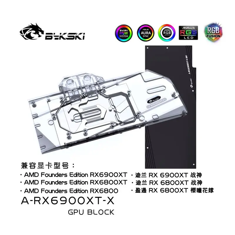Водяной блок Bykski для AMD RX6900XT 6800XT, референсное издание, GPU картаполное покрытие, медный радиаторный блокA-RGB в наличии