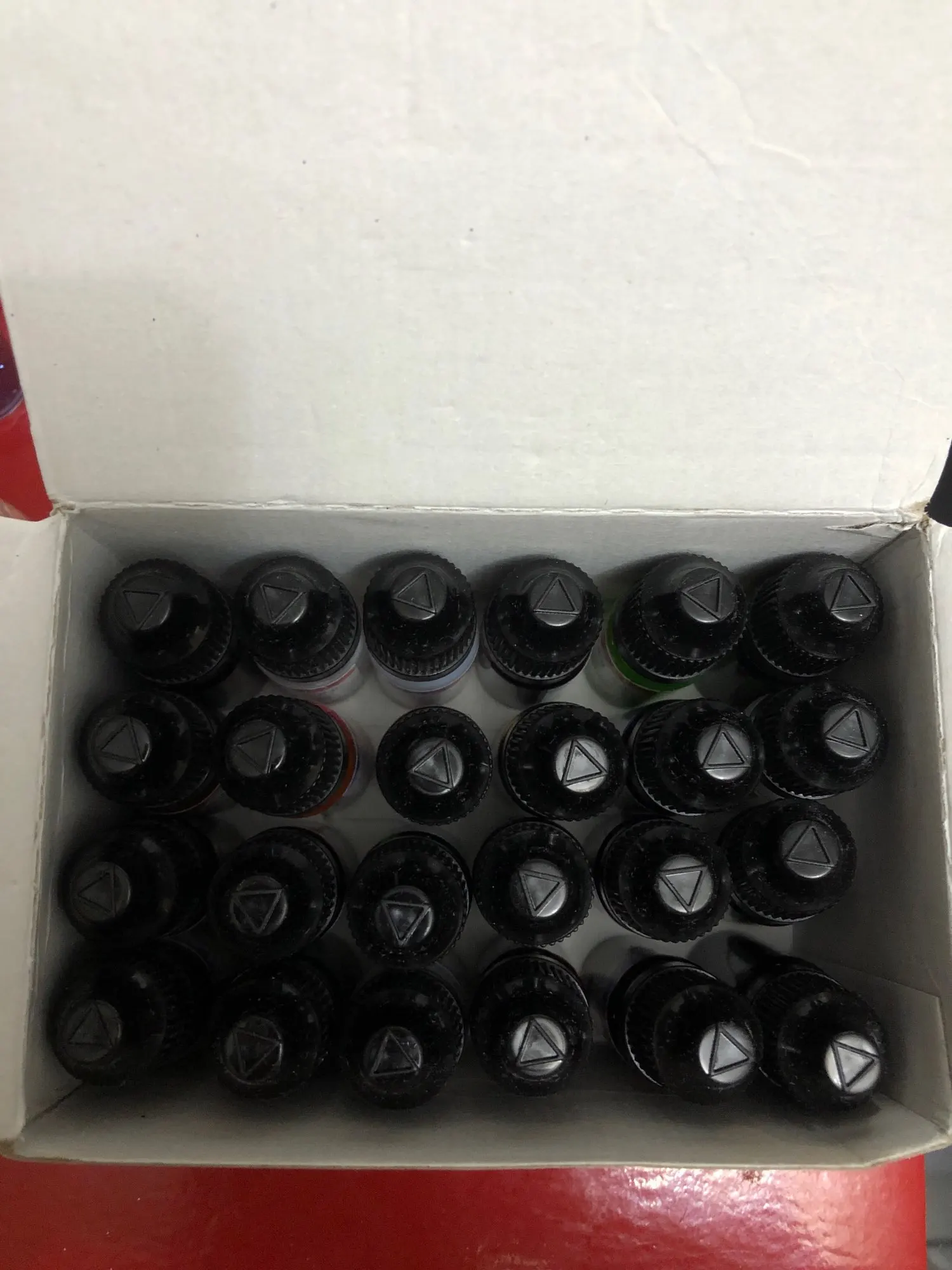 Box was a bit damaged, but there definitely are 24 bottles of inks. 4 of them are white, so technically it's 20 colours, not 24. They seem pretty full. I still have not used them, so I don't know the quality. Hopefully when I do update the review, I'll be as excited as I am now.