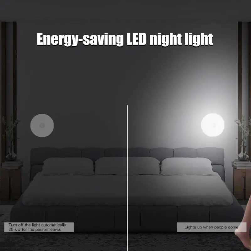 Светодиодный ночник с датчиком движения, перезаряжаемая по USB настенная лампа для спальни, лестницы, умсветильник светильник с датчиком освещения тела, Ники