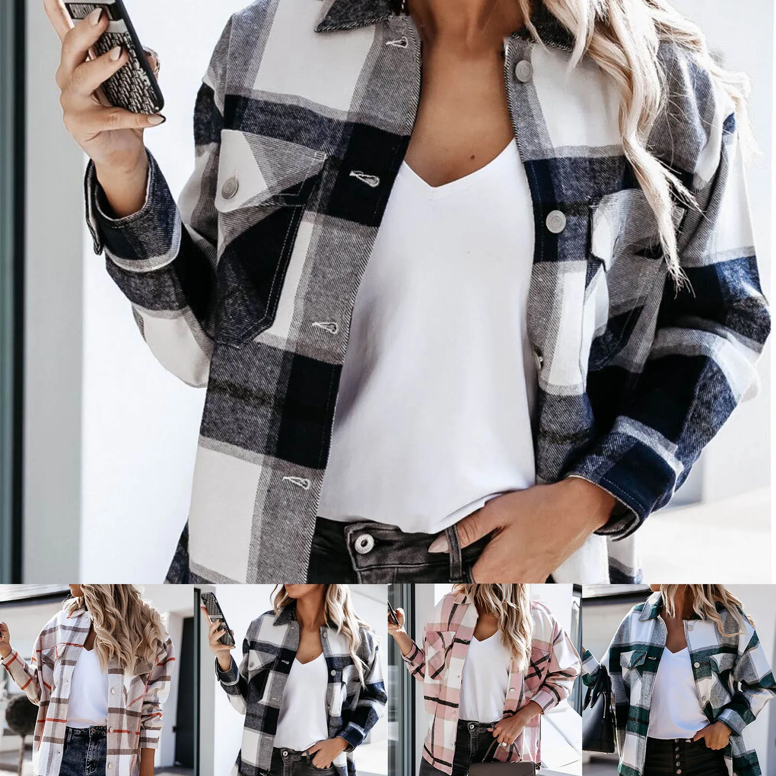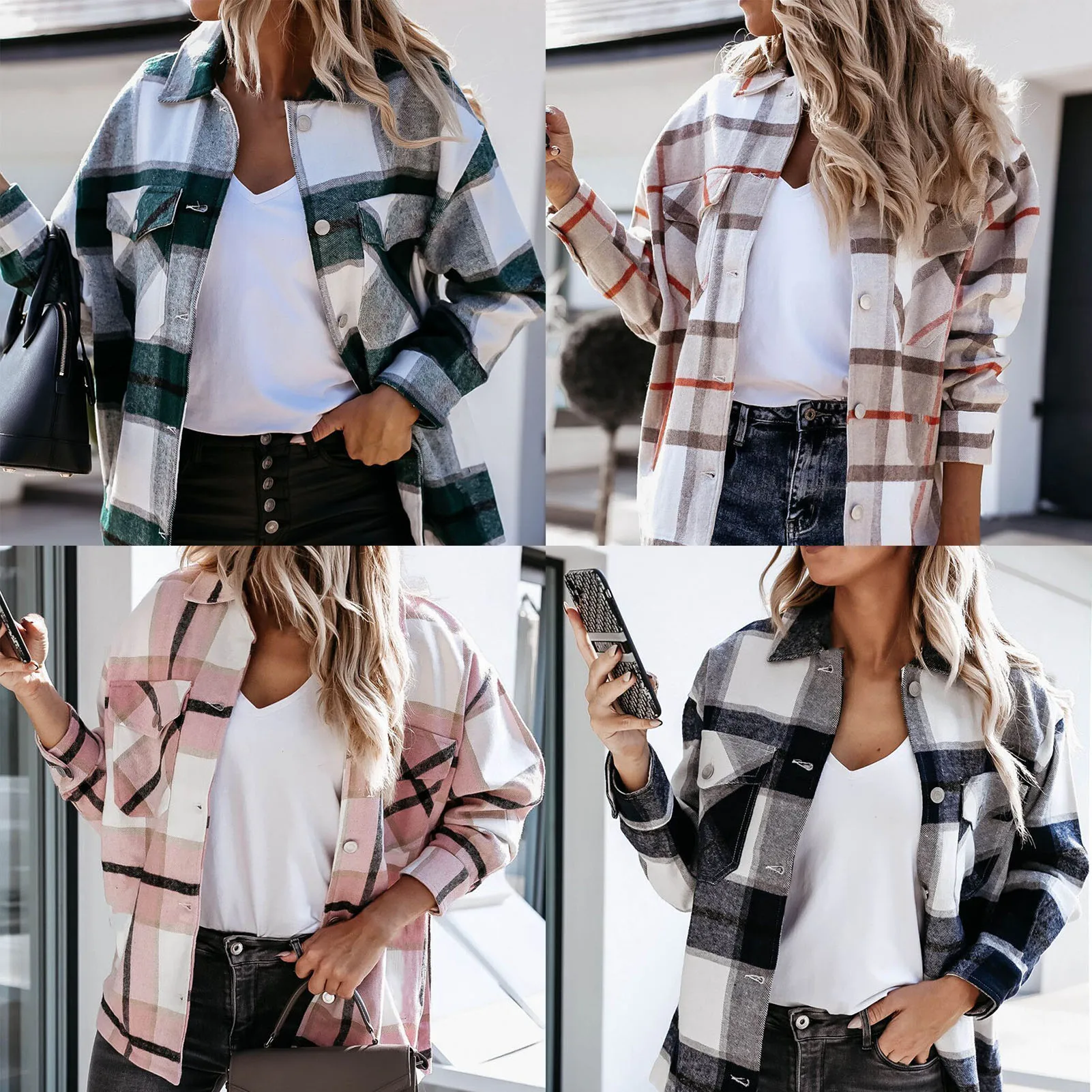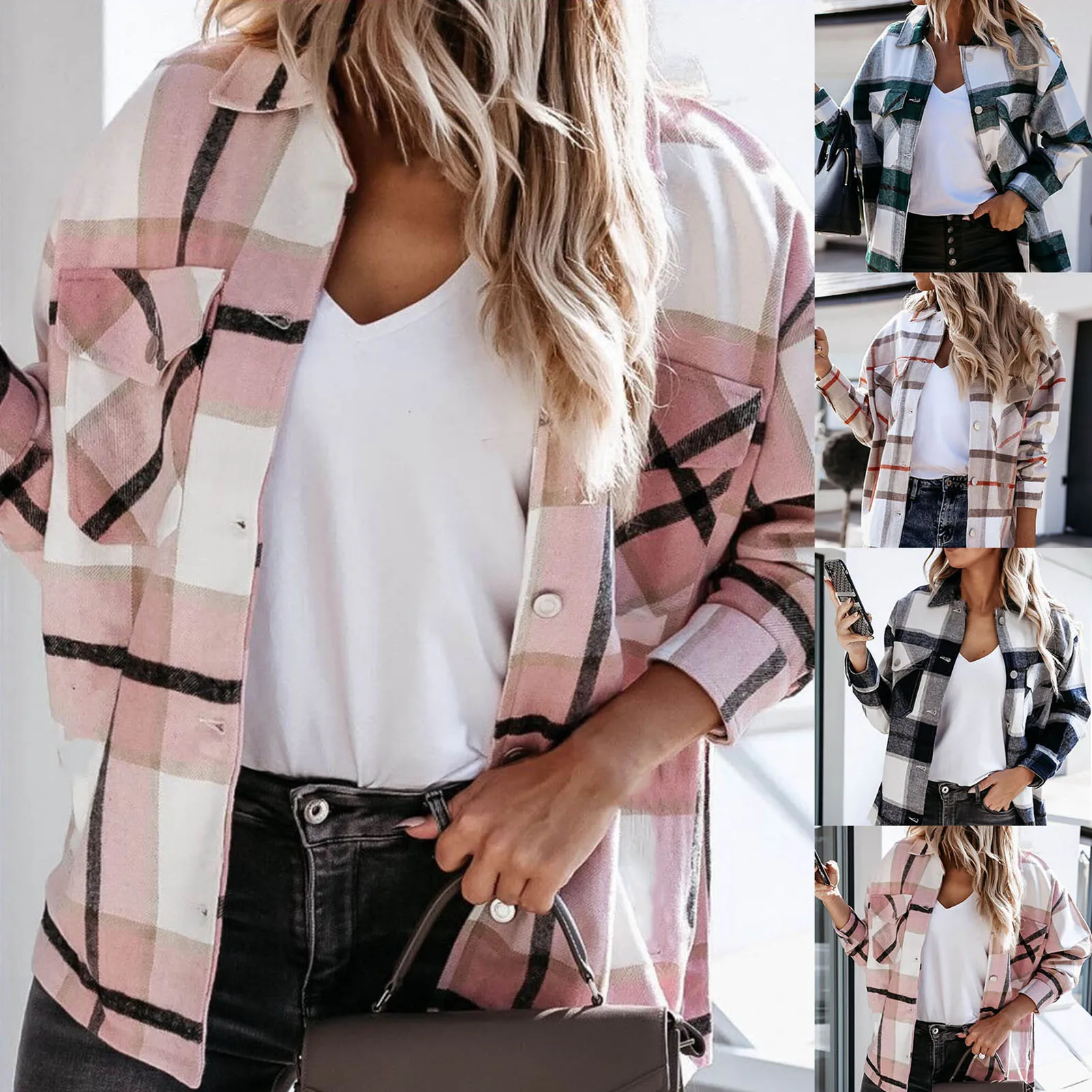 Женская рубашка в клетку, однобортная офисная рубашка с отложным воротником и длинным рукавом, осень размера плюс