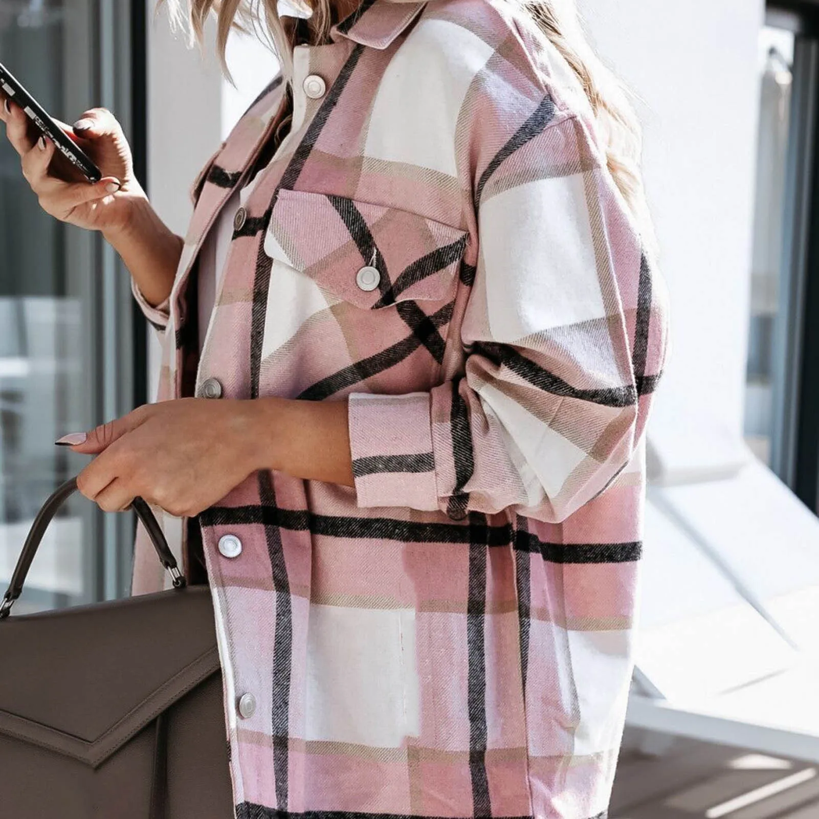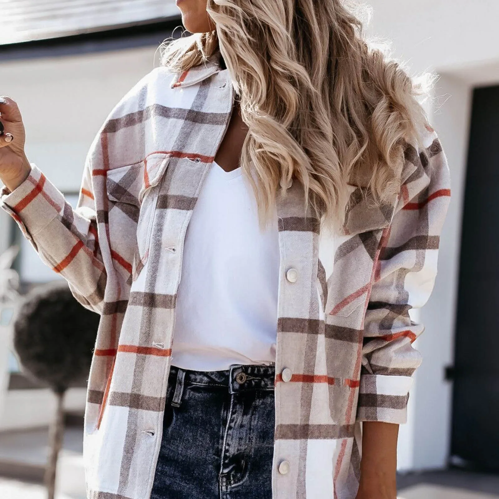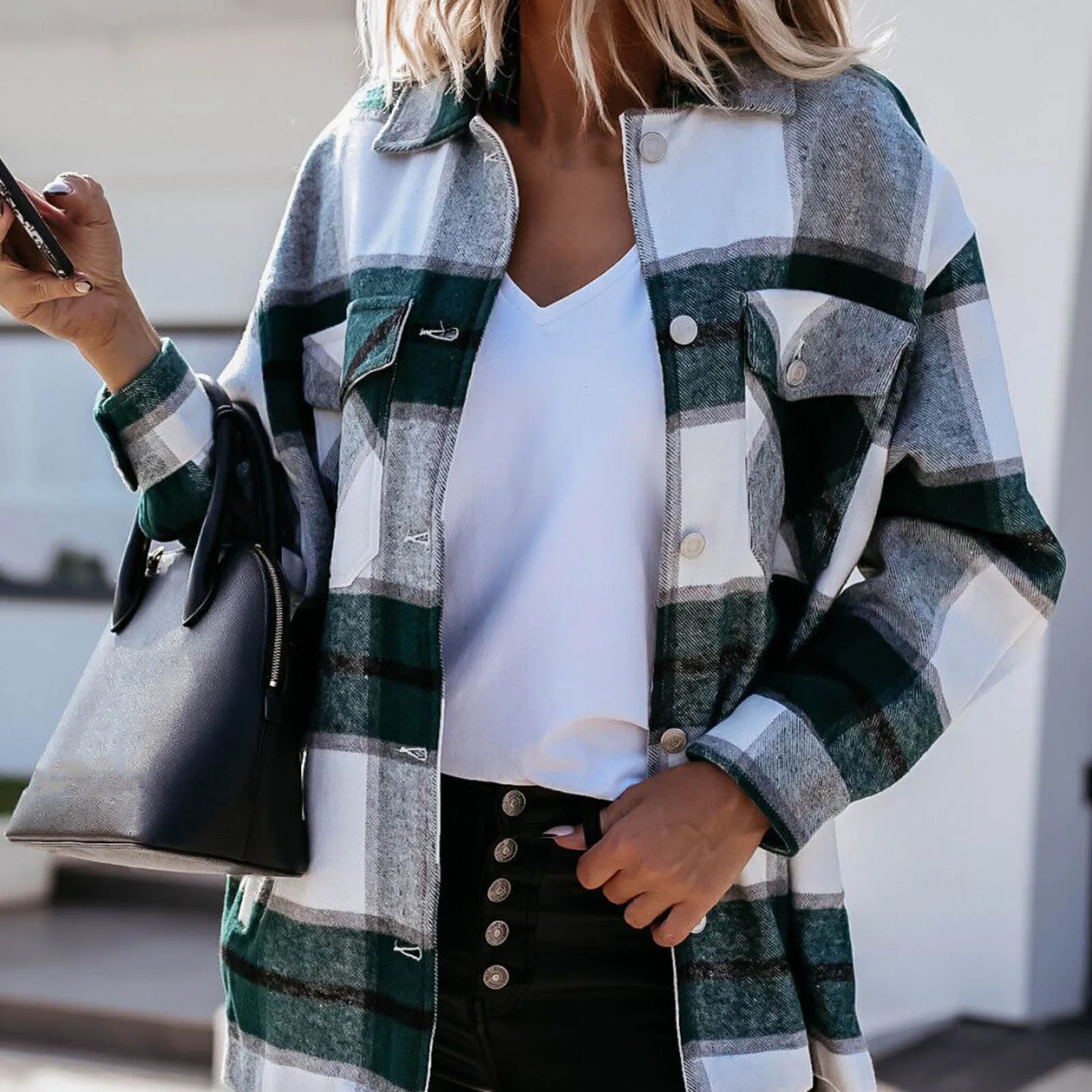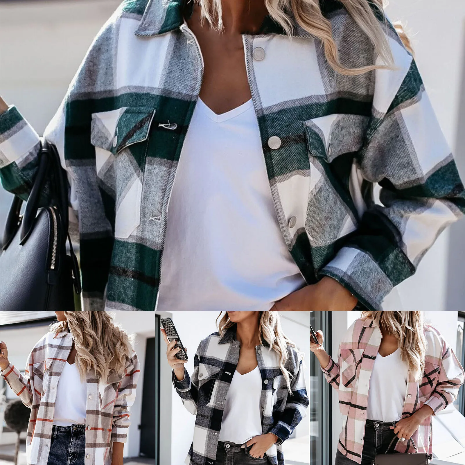 Женская рубашка в клетку, однобортная офисная рубашка с отложным воротником и длинным рукавом, осень размера плюс