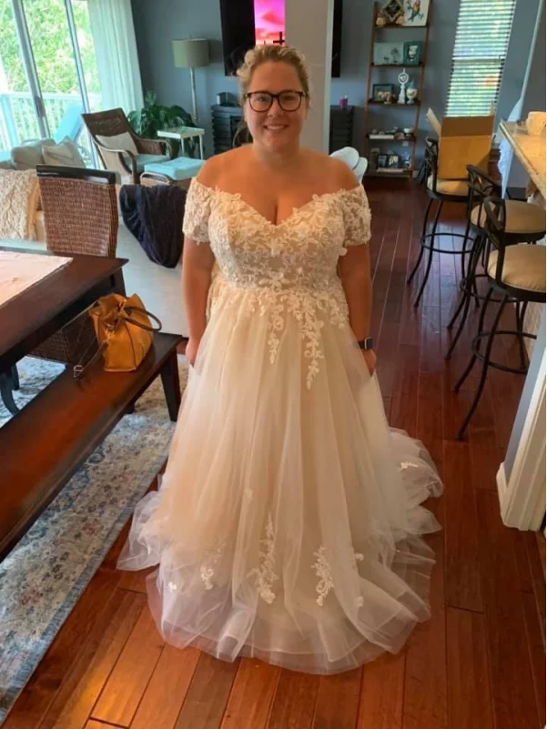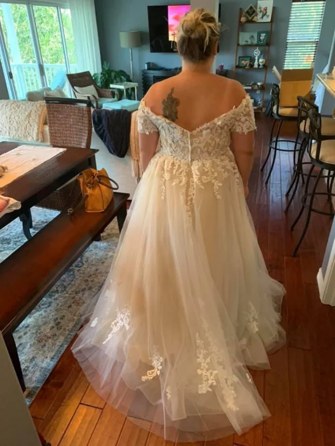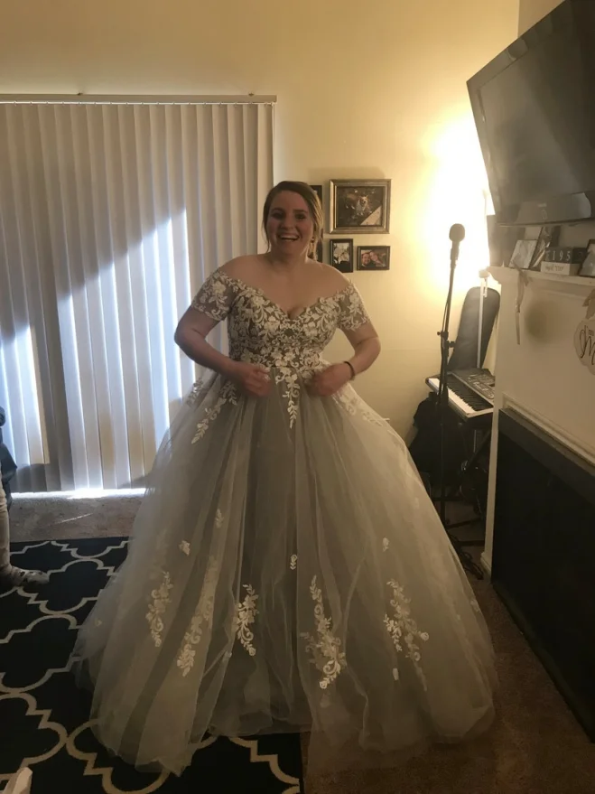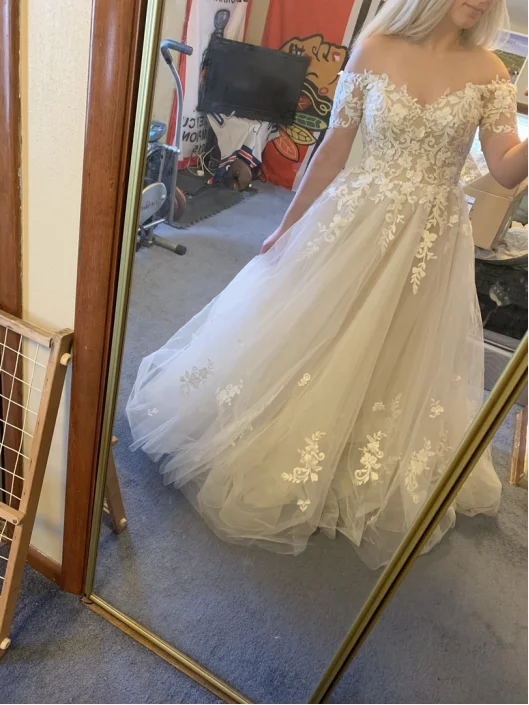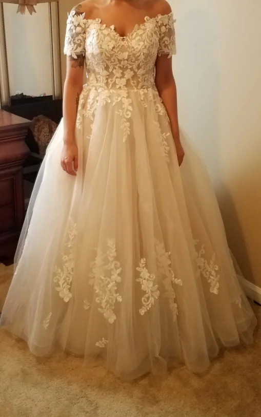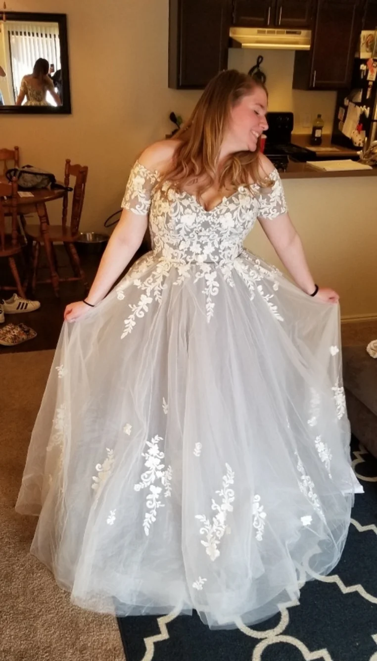 Превосходно! Я абсолютно влюблен в это платье. Я, честно говоря, не ожидала много за цену, но я так впечатлен! Качество идеальное, я добавила корсет, и он красиво сделан. Слои легкие и цветочные. Я отправил свои индивидуальные измерения, и он подходит как перчатка! Есть скромная подкладка в верхней части, силиконовая подкладка для верхней части, так что она не будет скользить, когда вы двигаетесь, и эластичный в руках, чтобы держать их еще, даже когда поднимаете руки! Я не могу дождаться женитьбы в этом (Извините за фото, моя голова была не такой красивой, как платье)