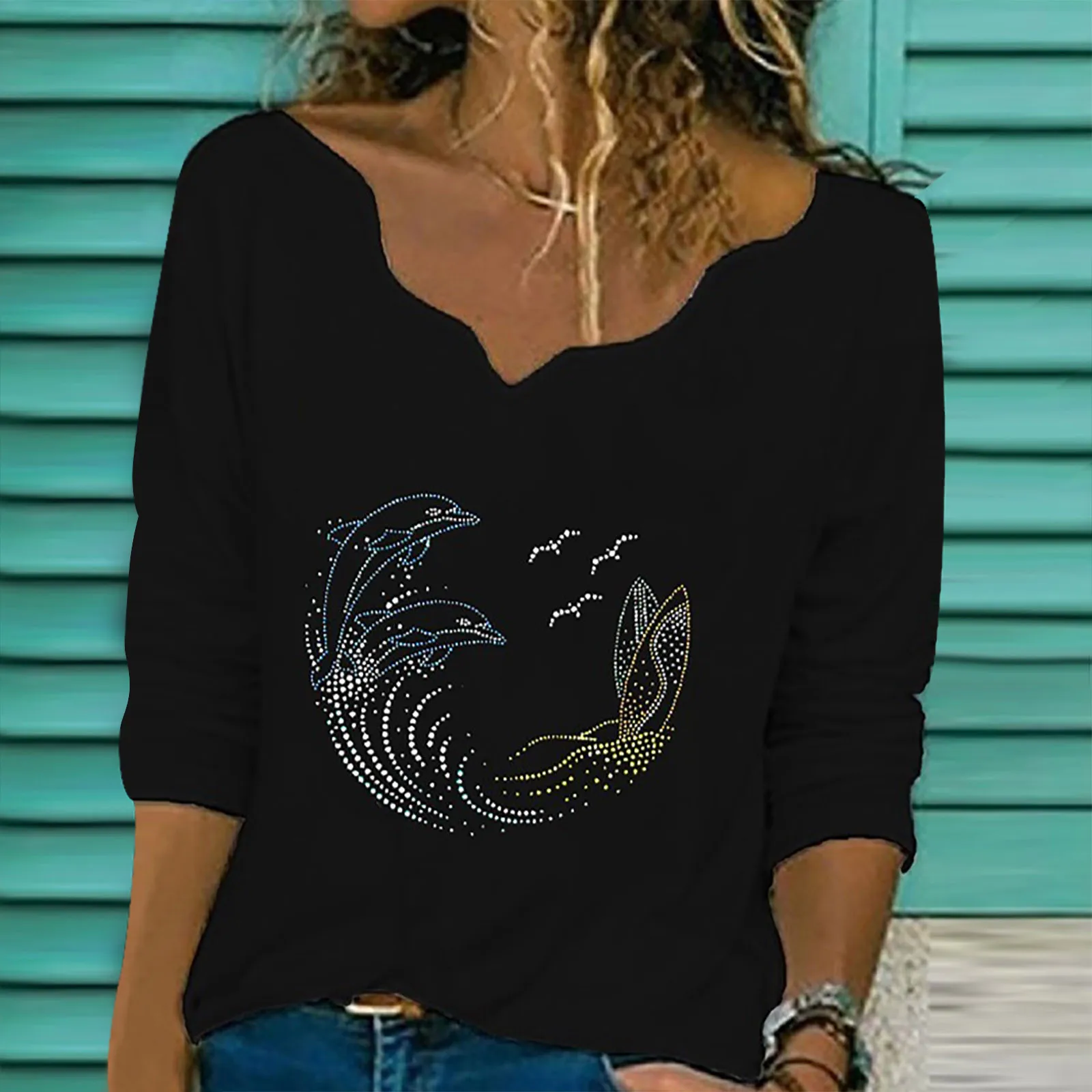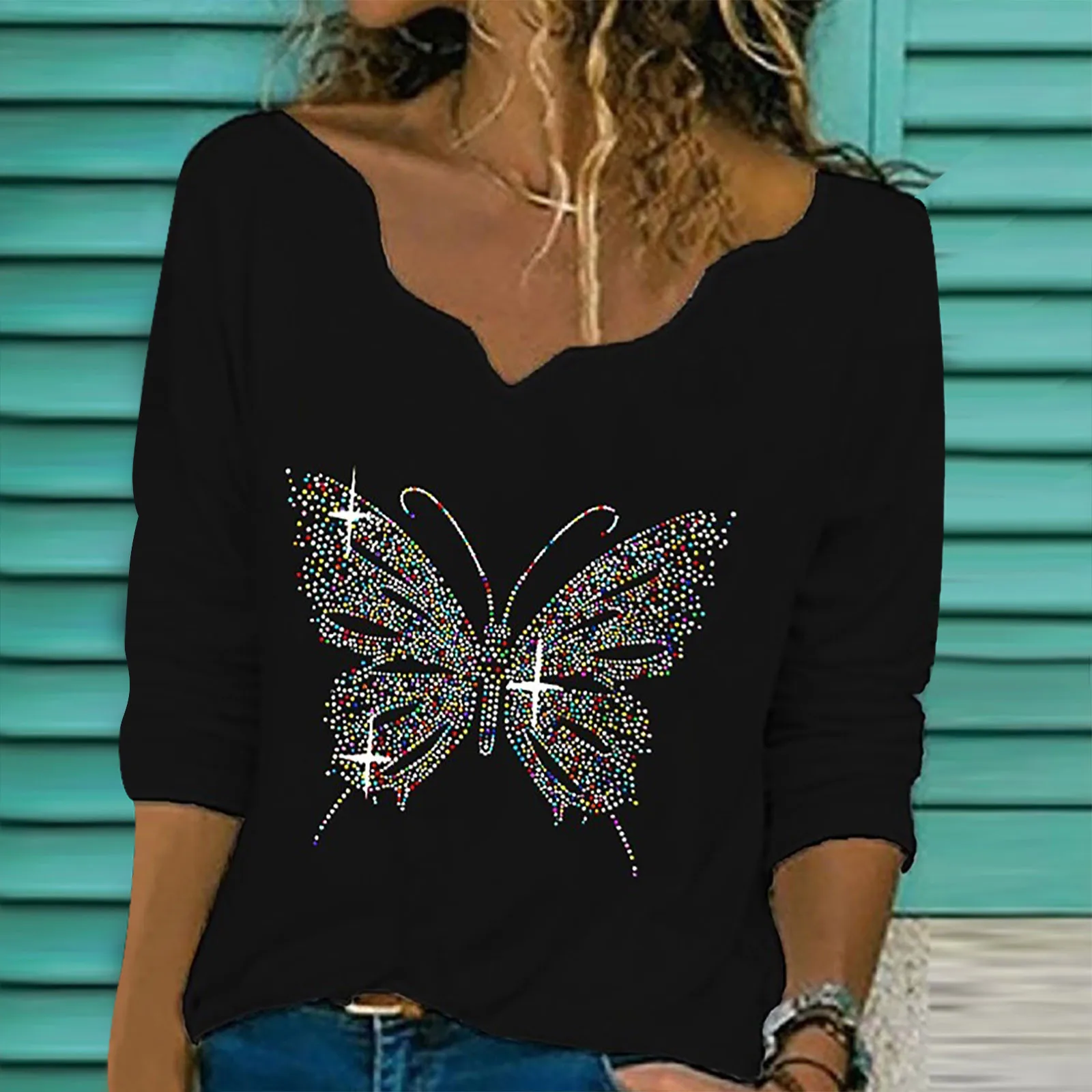 Футболка женская с длинным рукавом и кружевным воротником, пуловер с бабочкой и алмазной вышивкой, топ, рубашка