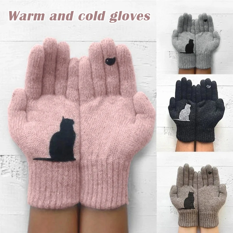 Перчатки женские шерстяные с подкладкой, Осень-зима, для защиты от холода, DO2, перчатки с принтом