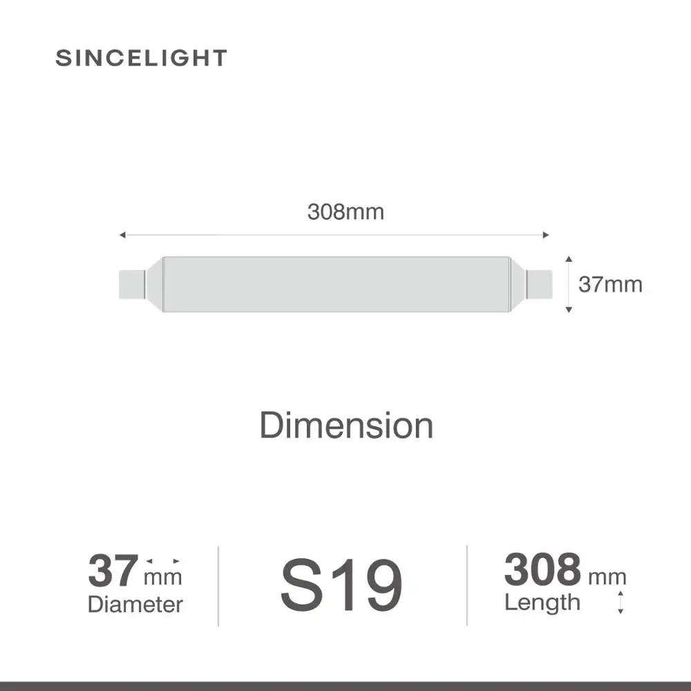 SINCELIGHT светодиодный линейная трубка с S19 Кепки молочно-белый, диффузор, 8 Вт, 2700 к с теплым белым светом, 700lm, 70 ватт эквивалент, Диаметр = 37 мм, Длина = 308 мм