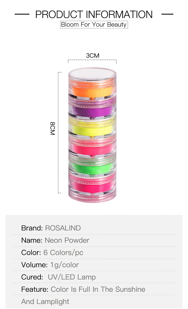 ROSALIND 6 цветов смешанные Неоновые Красочные Тени для век Пудра для ногтей Блеск для ногтей светящаяся пудра для губ Макияж тела пигмент TSLM1