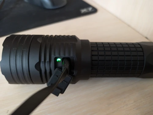 Очень мощный и яркий и при этом реально очень доступный, учитывая, что в нем есть хорошая зарядка и останется докупить только высокотоковый 26650 акк! После фонарей на XML2 и 18650, это монстр! Мне такой мощности не нужно, и всё же, это меньше, чем мне хотелось бы иметь :-) Следующая хотелка будет на 10 000 люмен. За счёт достаточно большого рефлектора в турбо светит уверенно метров на 300. На среднем режиме в темноте метров на 100 освещает. Встроенная зарядка вполне приличная. Тянет с моего блока питания 2 Ампера при 5 вольтах. QC не стартует. Для полной зарядки одного 26650 за пару часов этого хватит. Из недостатков: Неудачно сделана заглушка зарядного порта. Хвостик заглушки упирается прямо в пальцы и все время открывается, да и сама заглушка какая-то ненадёжная. Влагоустойчивость под большим сомнением, вряд ли стоит рассчитывать на большее, чем защиту от брызг и слабого потока воды из крана. В темноте в перчатках кнопку нащупать нереально, хорошо хоть она белая и ее как-то видно.