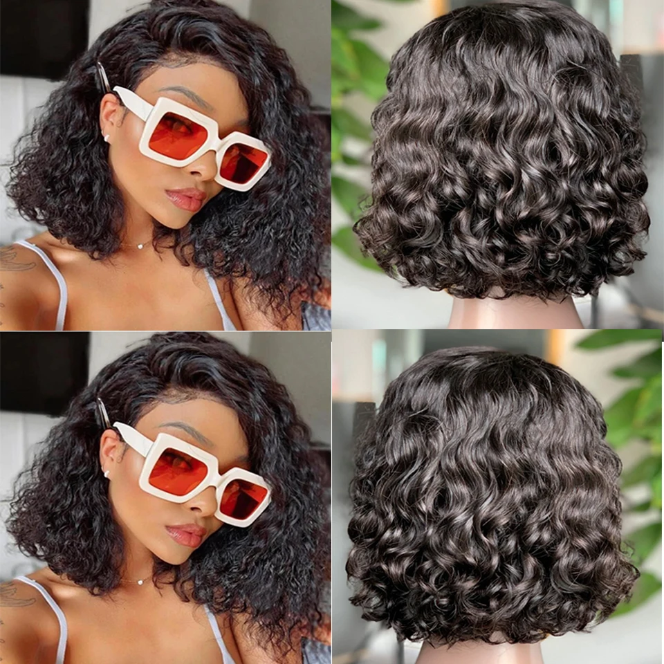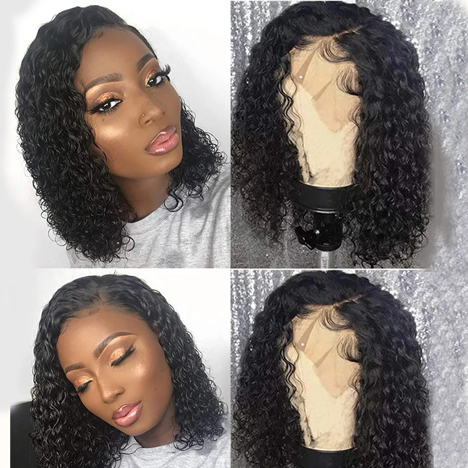 Парик с закрытием для женщин, бразильские волнистые волосы с коротким Бобом, 4x4, волнистые кудрявые волосы, предварительно выщипанные, на шнуровке, 180%