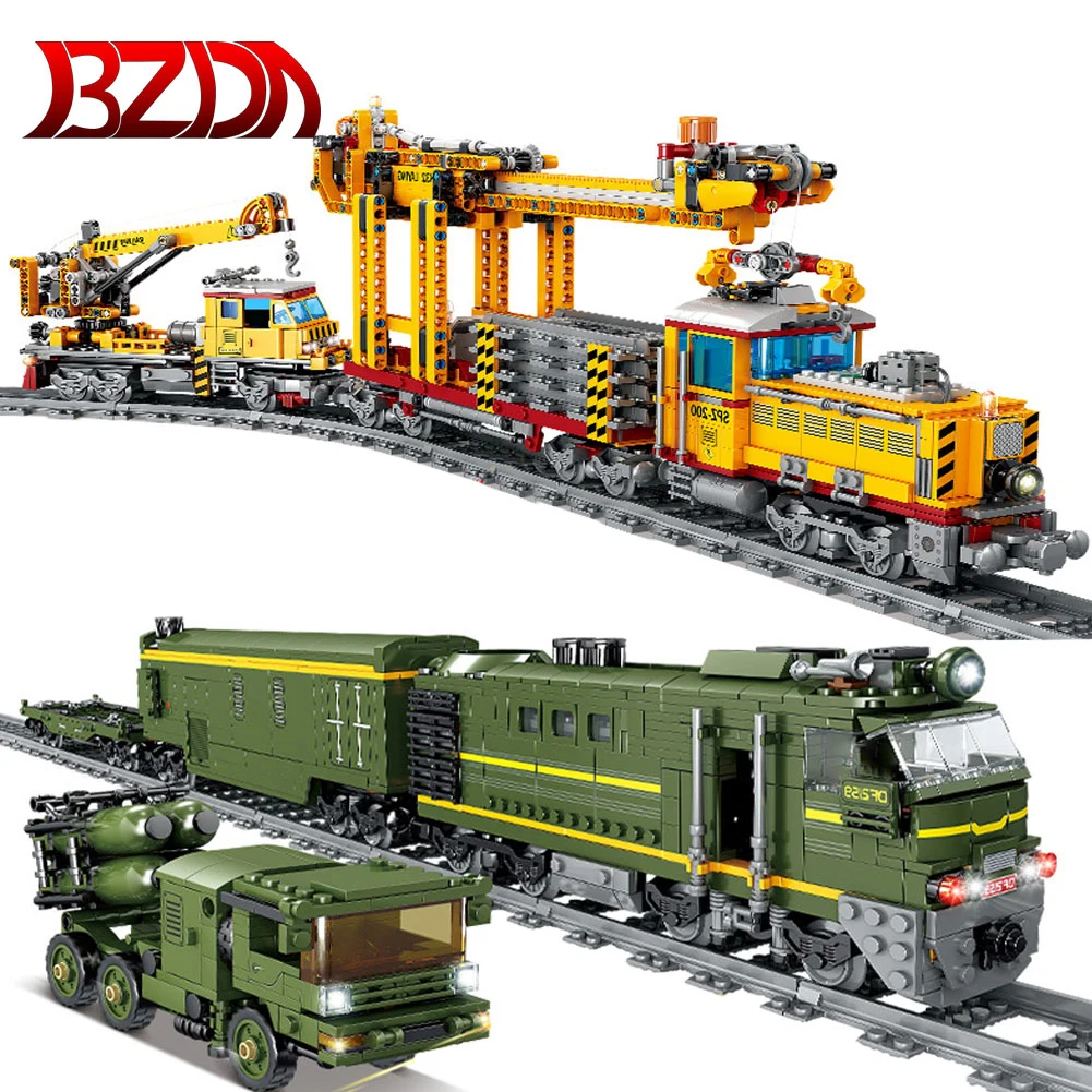 Конструктор BZDA Железнодорожный высокотехнологичный, строительные блоки, Военная серия, идеи для обслуживания рельсов, модель поезда, игрушки для детей, подарок на день рождения