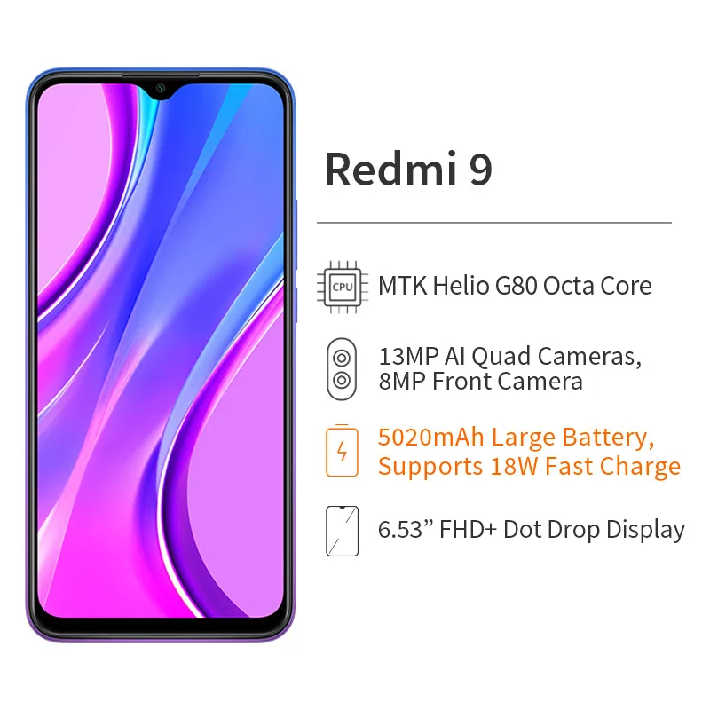 Redmi 9 с глобальной прошивкой, 128 Гб ПЗУ, 4 Гб ОЗУ, Восьмиядерный процессор Helio G80, камера 13 МП, большой аккумулятор 5020 мАч, 6,53 дюйма FHD + CN версия мобильный телефон