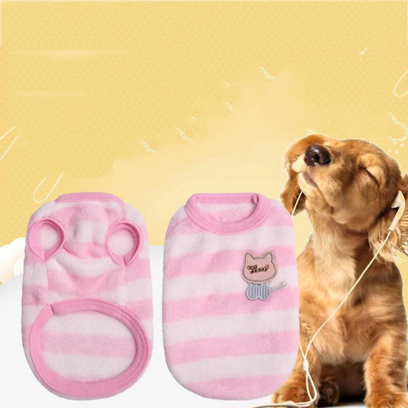 Одежда для собак, жилет для щенков, мягкая теплая зимняя одежда в полоску для маленьких собак, кошек
