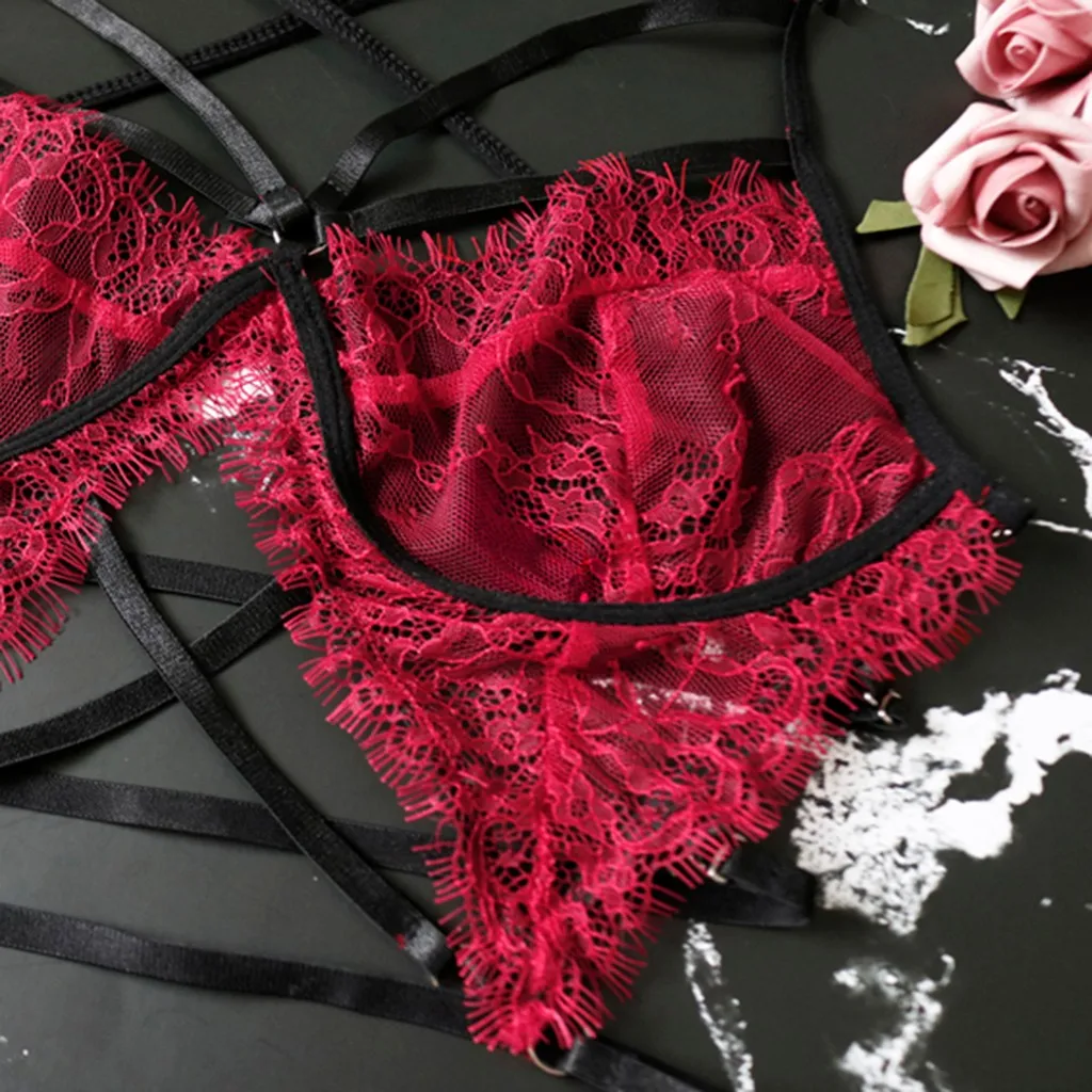 Сексуальное женское нижнее белье, кружевной бюстгальтер, стринги, п...