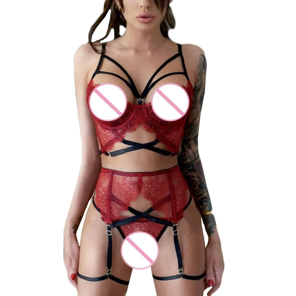 Женское Эротическое нижнее белье, очаровательное Красное Кружевное ...