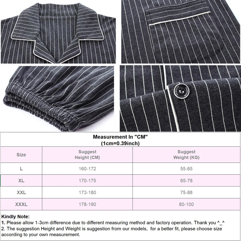 Мужские пижамы осенне-зимний набор полосатых пижам для отдыха, брюк...