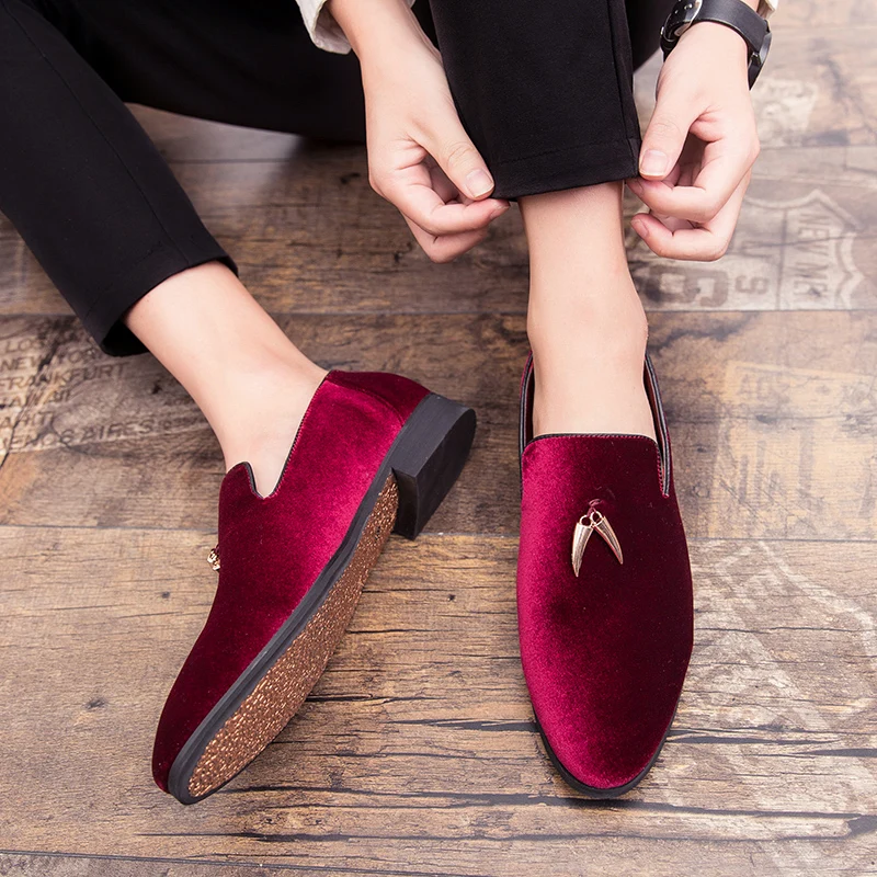 Мужские бархатные лоферы, черные, бордовые туфли на плоской подошве...