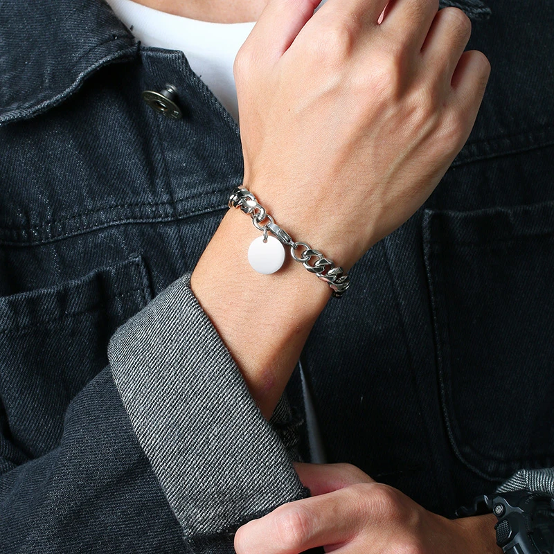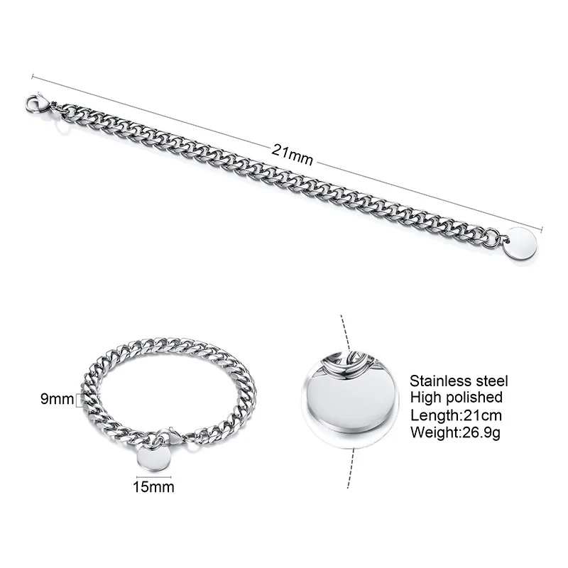 Браслет-цепочка мужской из нержавеющей стали с гравировкой, 9 мм