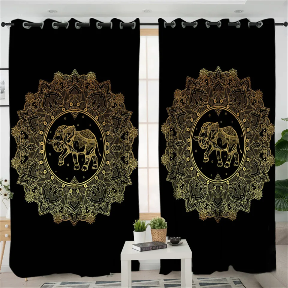Занавески для гостиной BeddingOutlet, с изображением мандалы, Золотой Звезды, Луны, затемняющие шторы для спальни, слона, роскошные занавески для окон, 1 шт.