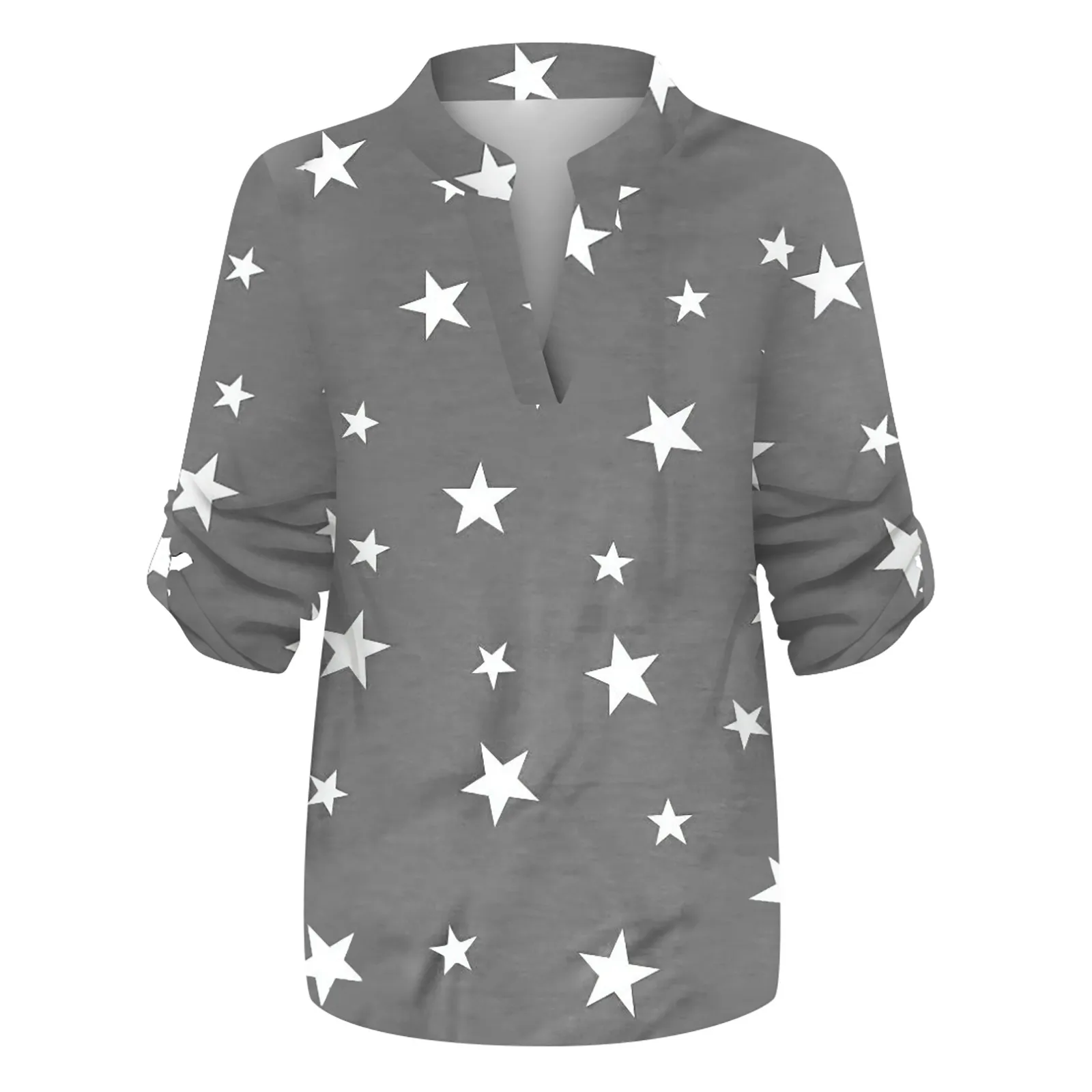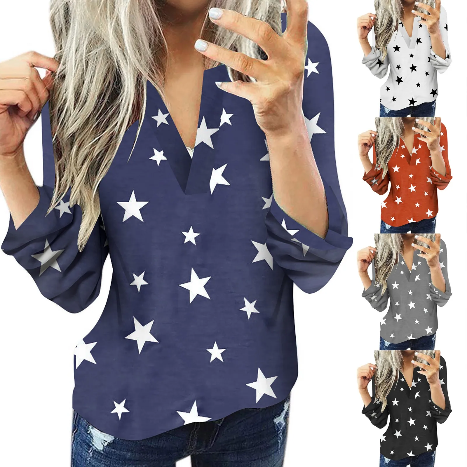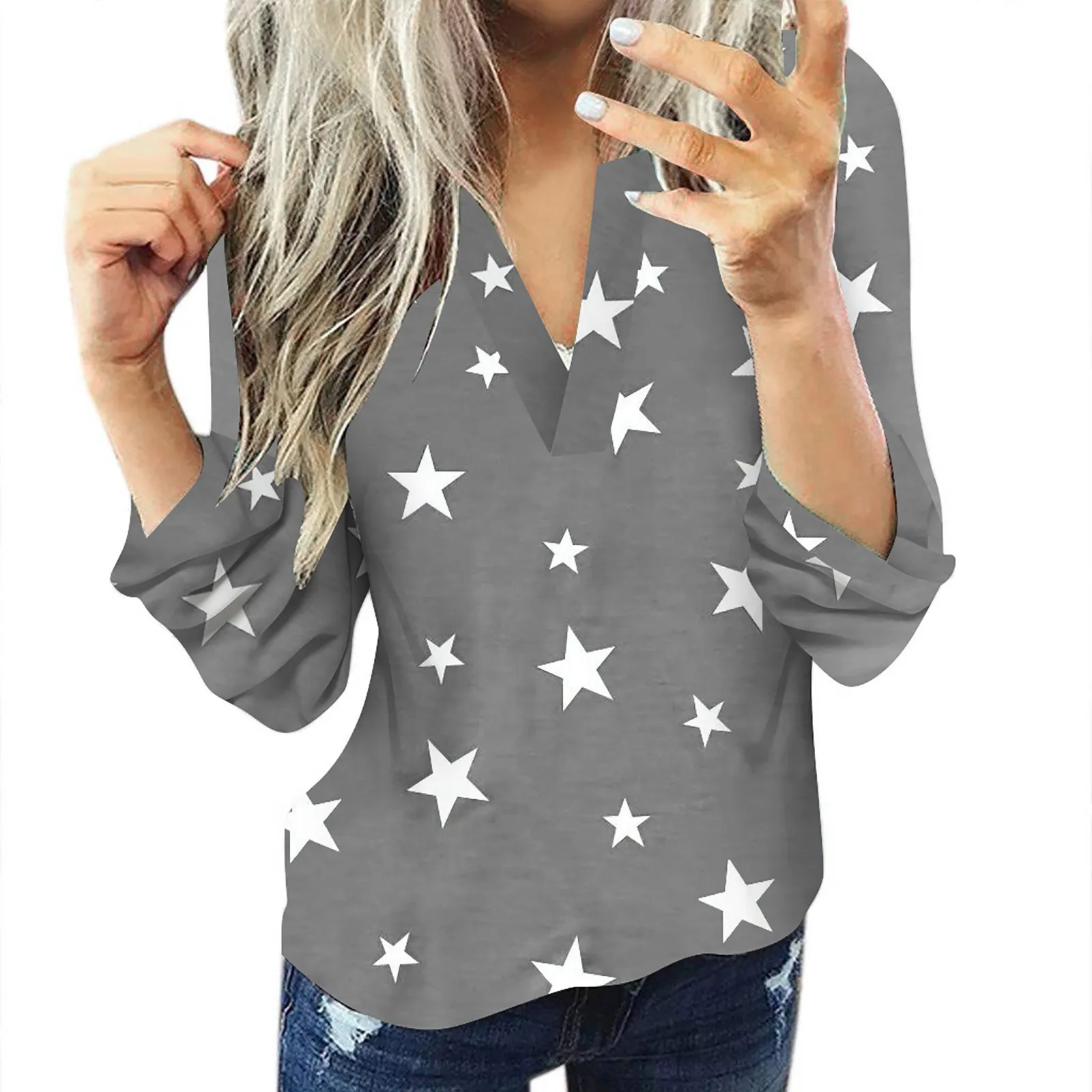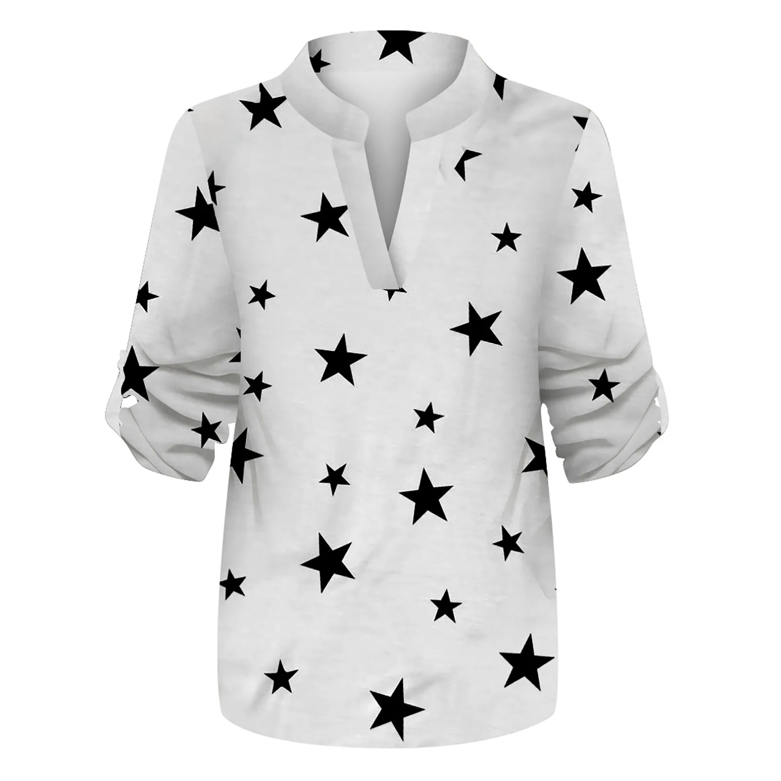 Женская Повседневная хлопковая рубашка с длинным рукавом со звездами, женская приталенная куртка, топ, рубашка женская, 2021