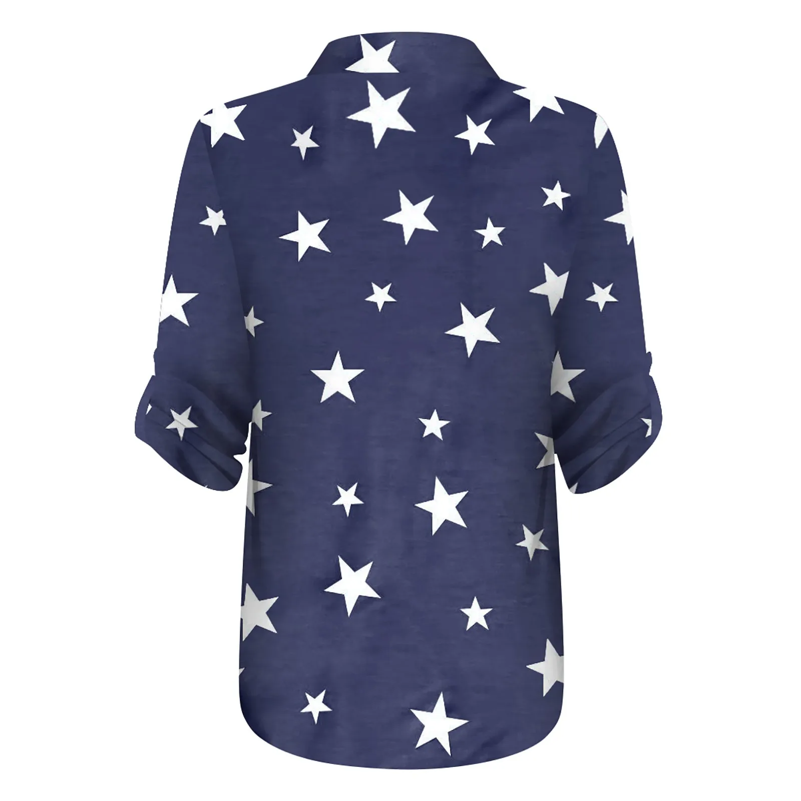 Женская Повседневная хлопковая рубашка со звездами с длинным рукавом, Женская облегающая куртка, рубашка, Топ
