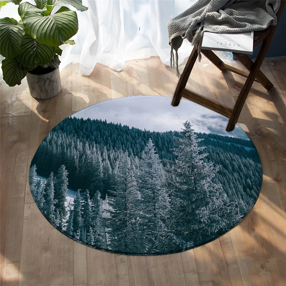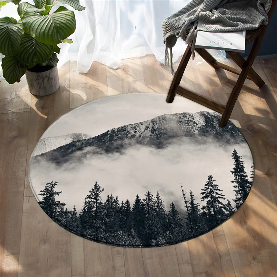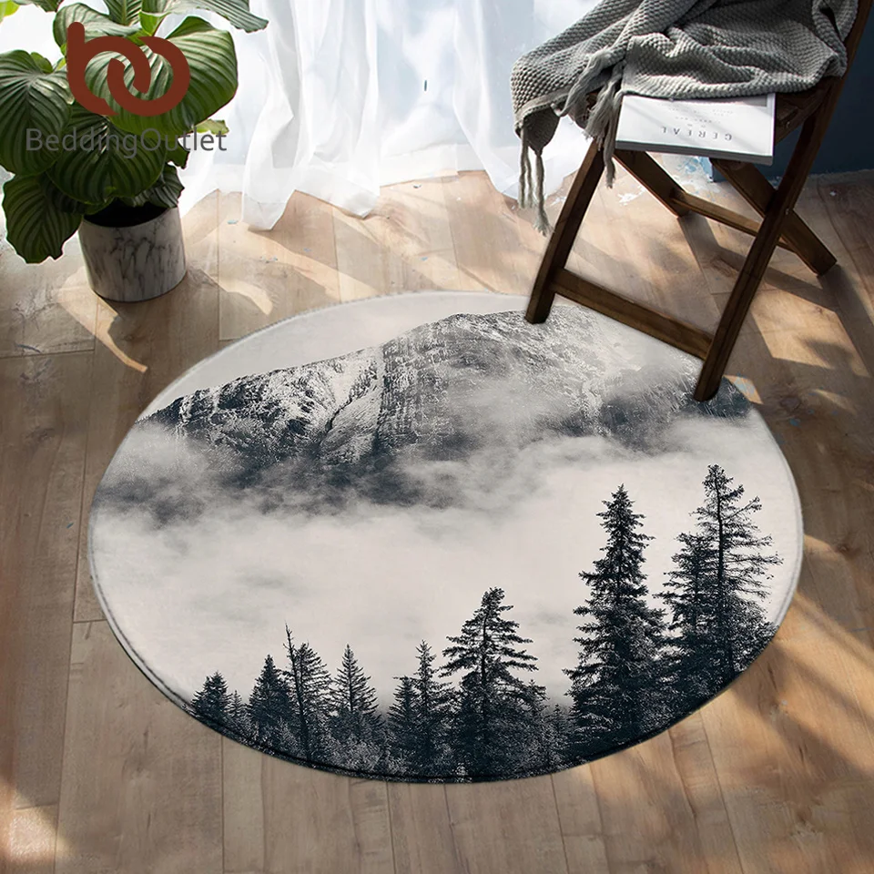 BeddingOutlet лес ковры для спальни хвойное дерево круглый коврик для гостиной туманный горный пол ковер природа красота игровой коврик