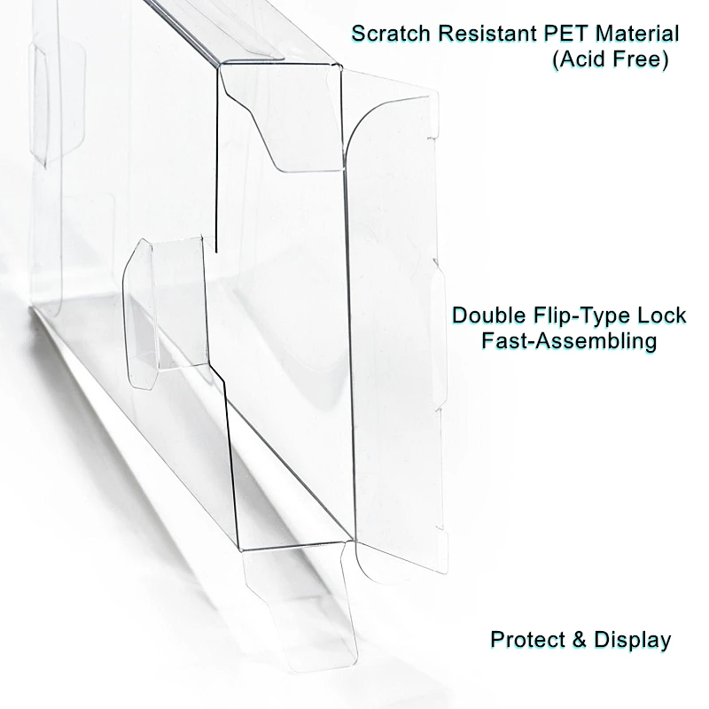 25 шт. абсолютно новый защитный чехол-коробка для SNES & N64 размер изделия: 130*35*180 ммПротив пыли, отпечатков пальцев и влагиБезопасно для дисплея: 0,3 мм Чистый ПЭТ сырье без вредных веществ и деформации.Поддерживать нетронутыми: двойной защелкивающийся замок может защитить соединение от случайного освобождения из-за вибрации или удара.Хорошая посылка: Защитная пленка на каждой игровой коробке, предотвращающая такие дефекты поверхности, как царапины и трещина во время транспортировки.Примечание: игра не включена.